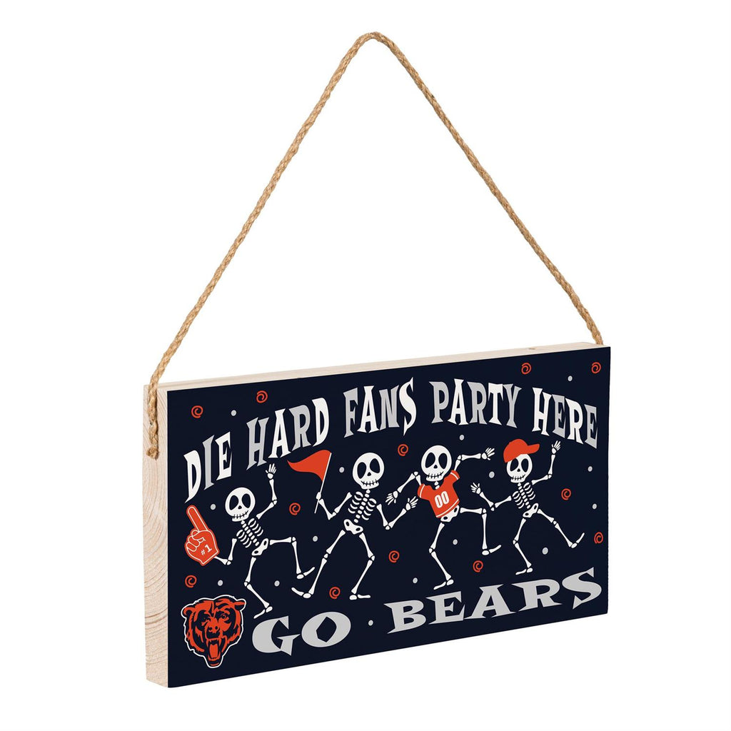 Celebrate your team spirit with the Chicago Bears Halloween Wood Wall Sign. Perfect for fans who love to showcase their loyalty during the spooky season, this 6x11 inch sign features playful skeleton designs decked in team gear. Made from durable wood, it’s an ideal addition to any Bears-themed party or Halloween décor. Hang it easily with the attached rope, adding a festive touch to your home or office. Whether you're hosting a game day gathering or just want to show your Bears pride, this sign is a must-have for die-hard fans.