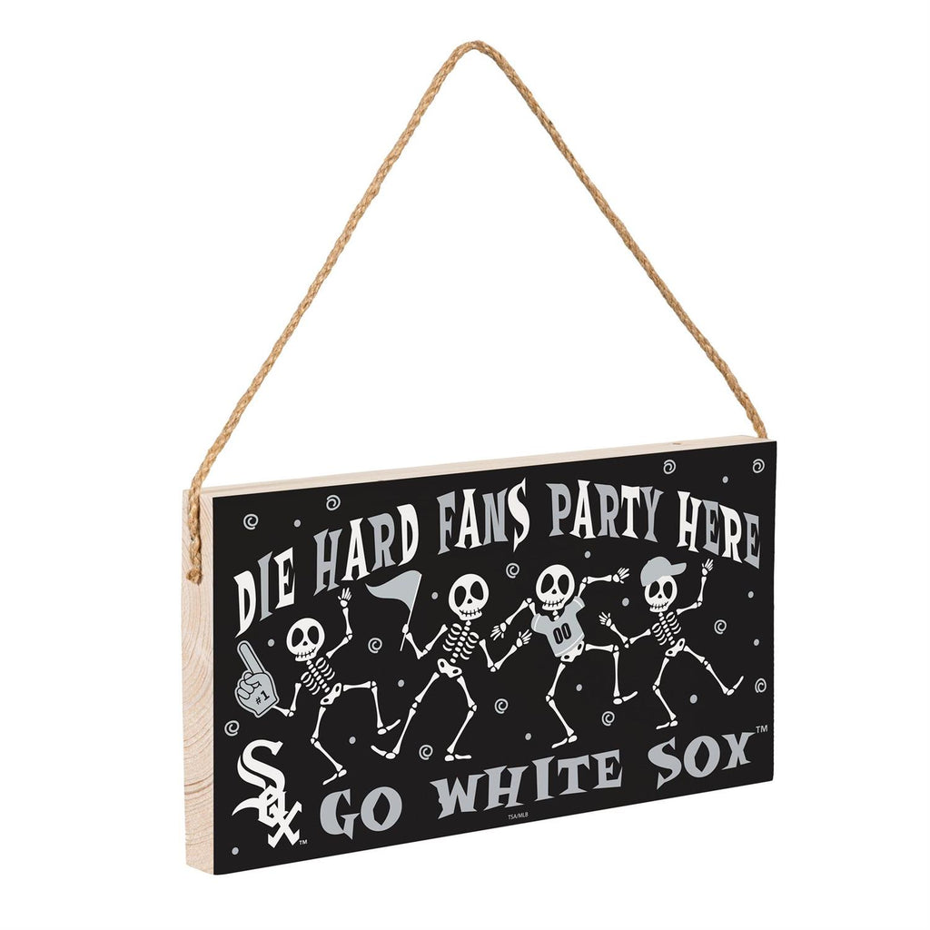 Celebrate Halloween with a sporty twist by displaying the Chicago White Sox Halloween Wood Wall Sign. Perfect for any die-hard fan, this 6x11-inch sign features a playful skeleton design that adds a festive and spirited touch to your home décor. Made from quality wood, it's durable and easy to hang with its attached rope. Whether you're hosting a Halloween party or just want to show off your team pride, this sign is a must-have addition to your seasonal decorations.