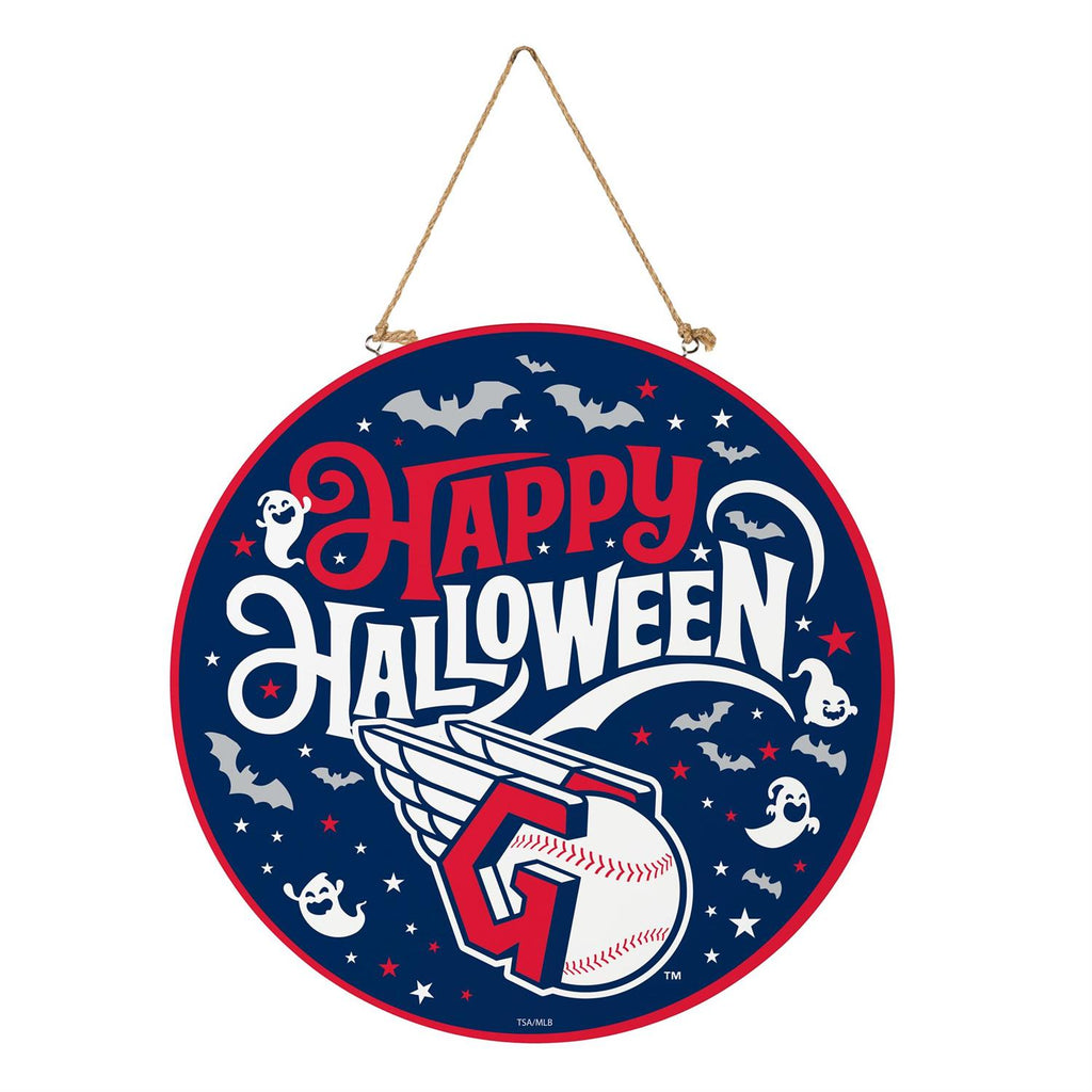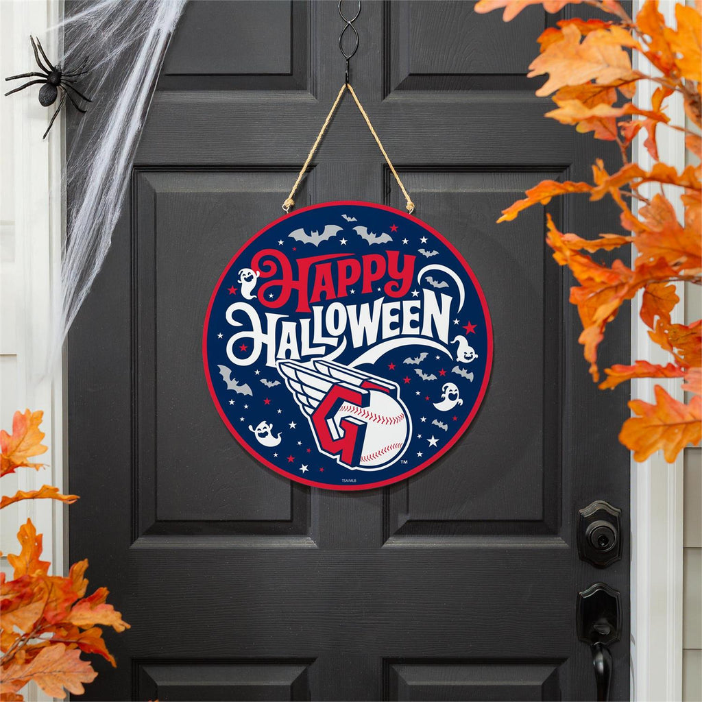 Celebrate Halloween while showing off your team spirit with this Cleveland Guardians Halloween Round Door Décor. Perfect for any fan, this 18x18 inch hanging sign features a festive design with bats, stars, and baseball elements, adding a unique touch to your indoor décor. Made with durable materials, it’s designed to withstand the test of time, making it a great addition to your annual Halloween decorations. The attached hanging rope allows for easy installation on any door or wall, ensuring your home is ready for the spooky season and game days alike.