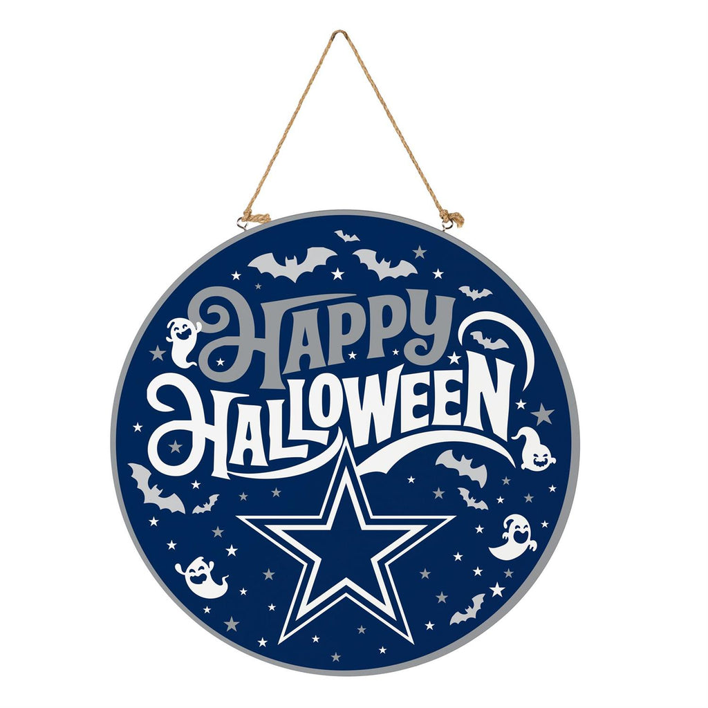 Celebrate Halloween in style with the Dallas Cowboys Halloween Round Door Décor. Measuring 18 inches in diameter, this eye-catching piece combines festive Halloween elements with team pride. Made for indoor wall décor, it features a sturdy construction and includes a convenient hanging rope, making it easy to display on any door or wall. The bold design showcases a fun Halloween message surrounded by bats and ghosts, all set against the iconic Dallas Cowboys emblem. Perfect for fans looking to add a touch of team spirit to their seasonal decorations.