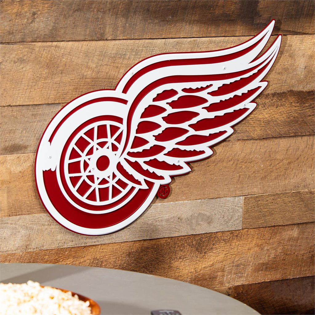 Showcase your love for the Detroit Red Wings with this striking layered metal wall art. Perfect for any fan's home, office, or fan cave, this piece captures the essence of the team with its bold red and white design. Crafted from durable metal, it features intricate layering that adds depth and dimension, making the iconic logo stand out prominently. Measuring 15.5 inches in length and 11.5 inches in width, it’s a perfect size for any wall space. Whether you're a lifelong fan or new to the game, this wall art is a must-have for expressing your team pride.