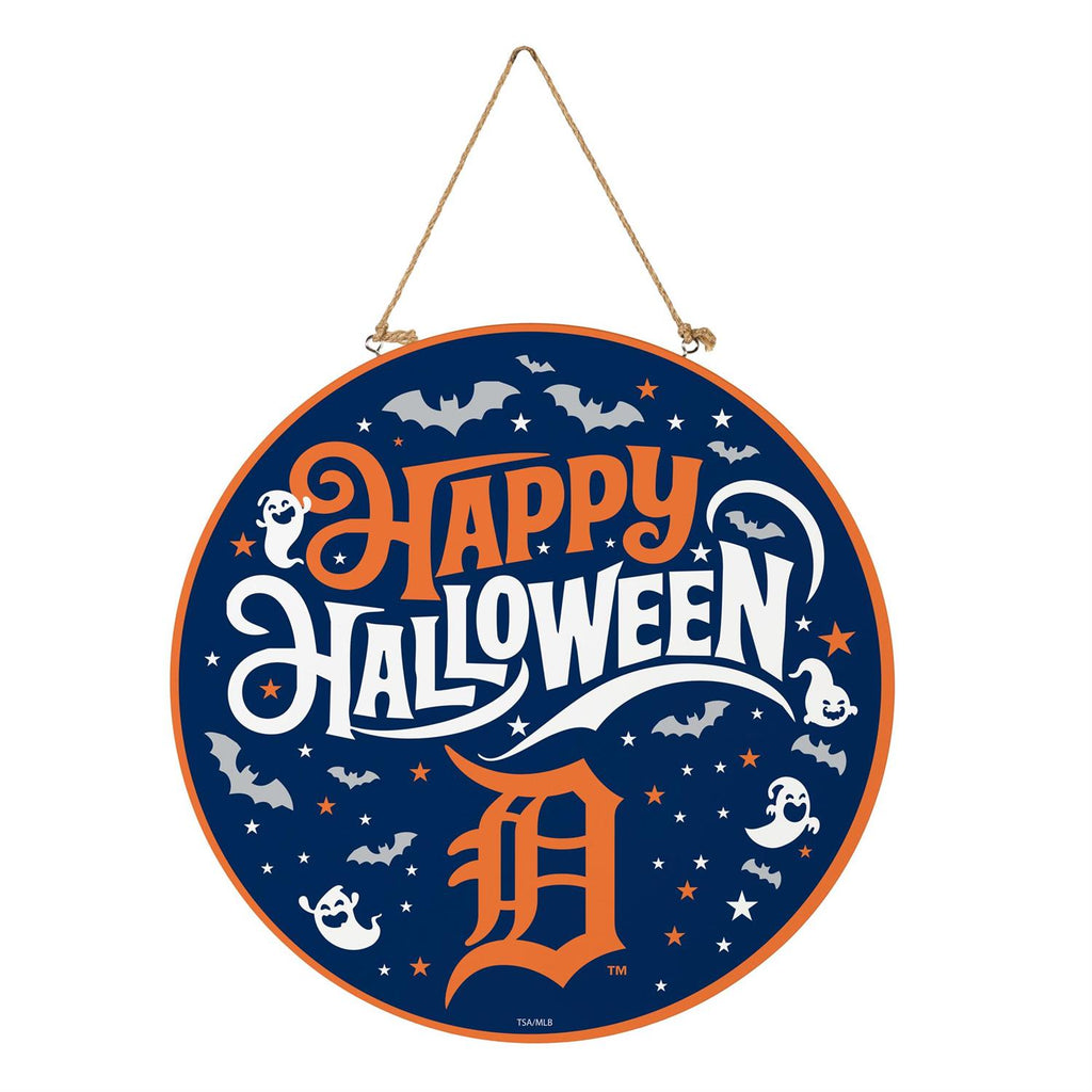 Celebrate the spooky season with a twist of team pride using the Detroit Tigers Halloween Round Door Décor. Measuring 18x18 inches, this charming sign is perfect for welcoming guests into your home while showcasing your love for baseball. Crafted for durability, it features a vivid design with Halloween motifs alongside the iconic team emblem. The included hanging rope makes it easy to display on any door or wall. Ideal for both indoor use, this piece is a fun addition to any Tigers fan's Halloween decorations.