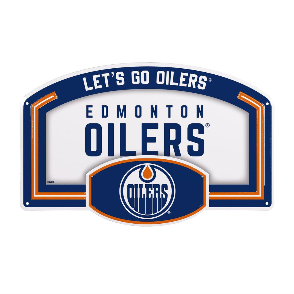 Showcase your support for the Edmonton Oilers with this embossed steel wall sign. Measuring 11.75 inches by 7.5 inches, this sign is the perfect addition to any fan's collection. Its durable steel construction ensures long-lasting display, while the bold team graphics make a statement in any room. Perfect for a game room, office, or any space that could use a touch of hockey pride. Easy to mount, this sign is a great way to celebrate your favorite team.