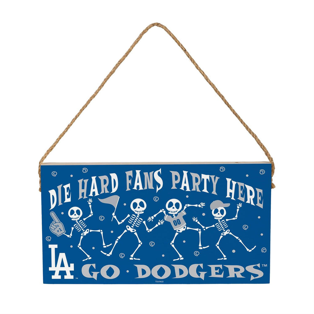 Celebrate Halloween and your favorite team with the Los Angeles Dodgers Halloween Wood Wall Sign. Measuring 6x11 inches, this sign adds a festive touch to any room, blending team spirit with seasonal charm. The playful skeleton design and bold lettering make it a standout piece for any Dodgers fan's collection. Crafted from durable wood, it’s perfect for indoor use, whether in a game room, office, or entryway. The included twine makes hanging easy and convenient, instantly enhancing your décor with a touch of spooky team pride.