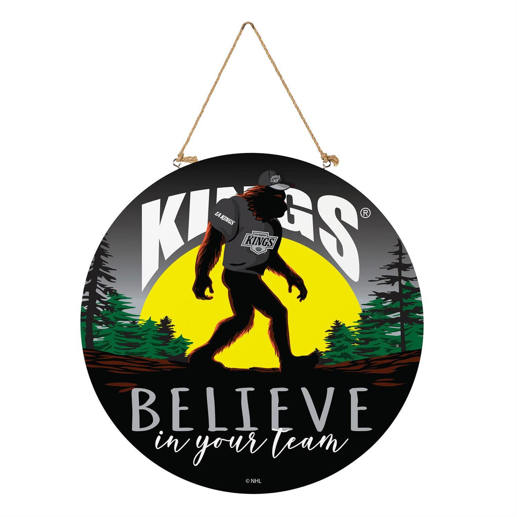 Show off your team spirit with the Los Angeles Kings Bigfoot Round Door Décor. Measuring 18 inches in diameter, this unique piece is perfect for any fan's home. Crafted for durability, it features a bold design with a striking Bigfoot graphic set against a scenic backdrop, making it a standout addition to your indoor wall décor. The attached hanging rope allows for easy display on doors or walls, making it a versatile piece for any space. Ideal for game days or as a year-round decoration, it brings a touch of team pride to your home.
