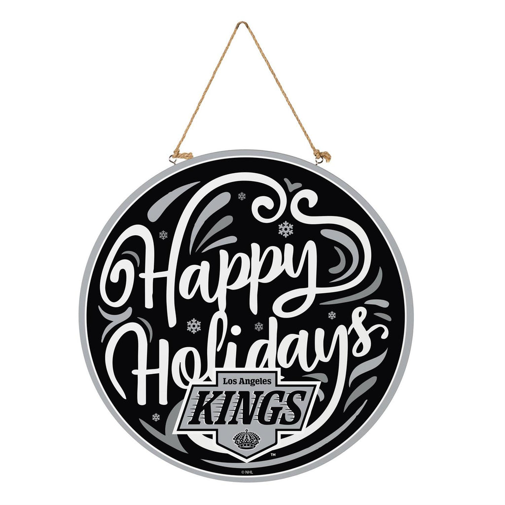 Celebrate the festive season with this Los Angeles Kings Holiday Round Door Décor. Measuring 18 inches in diameter, this charming piece is perfect for fans wanting to showcase their team spirit with a holiday twist. The durable materials and included hanging rope make it easy to display on any door, adding a welcoming touch to your entryway. The stylish black and white design features festive patterns that blend seamlessly with seasonal décor. Ideal for indoor use, this décor piece is a great way to show your love for the Kings while embracing the holiday cheer.