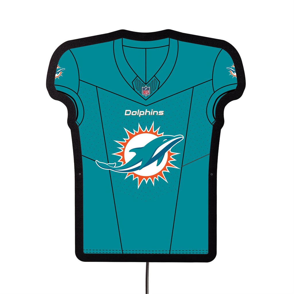Illuminate your fan space with the Miami Dolphins NFL Football Jersey Edgelite LED Decor. Perfect for any enthusiast looking to showcase team spirit, this vibrant wall décor piece measures 23.0 inches in both length and width, with a slim profile of 0.38 inches. The LED lighting highlights the iconic jersey design, making it a standout addition to any room. Crafted for durability and easy installation, it's an ideal choice for game rooms, offices, or man caves. Celebrate your favorite team with this eye-catching and energy-efficient decoration.