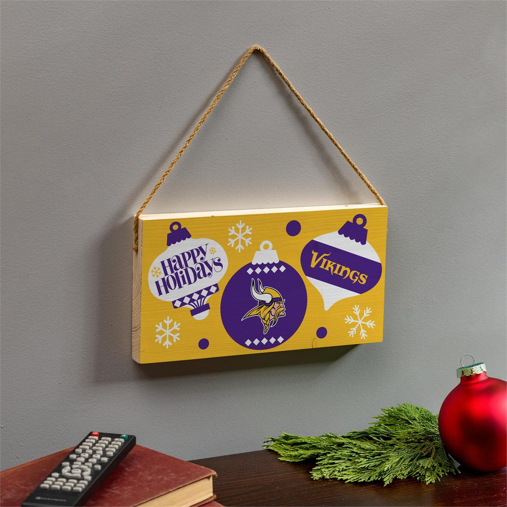 Celebrate the holiday season with team spirit using this Minnesota Vikings Holiday Wood Wall Sign. Perfect for fans, this sign features vibrant colors and festive designs that highlight your team pride. Measuring 6 by 11 inches, it’s an ideal size for adding a touch of cheer to any room. Crafted from durable wood with a rustic twine hanger, it’s easy to display on your wall, door, or even above the mantel. Whether you’re gifting to a fellow fan or decorating your own space, this sign is a merry way to show support.