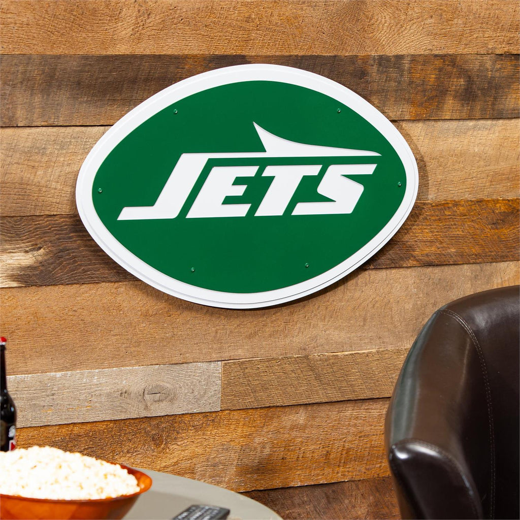 Showcase your team pride with the New York Jets Layered Metal Wall Art, a perfect addition to any fan's home or office. With dimensions of 15.5 inches by 11.5 inches, this sleek, green and white metal sign is designed to make a statement. Its layered construction adds depth and dimension, making it a standout piece on any wall. Lightweight and easy to hang, this wall art is suitable for both indoor and outdoor spaces, allowing you to express your allegiance wherever you choose. Ideal for game rooms, man caves, or as a gift for fellow fans.