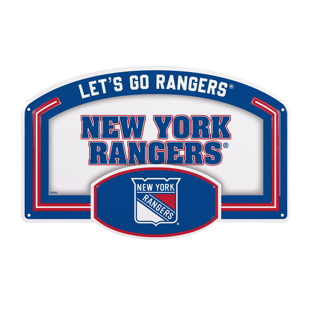 Showcase your love for the New York Rangers with this USA embossed steel wall sign. Measuring 11.75 x 7.5 inches, this durable sign features vibrant team colors and a bold design that will stand out in any room. Perfect for game days or everyday decoration, its compact size makes it ideal for both home and office settings. The steel construction ensures long-lasting quality, while the pre-drilled holes make for easy hanging. Whether you're a die-hard fan or looking for the perfect gift, this sign is a must-have addition to any Rangers collection.