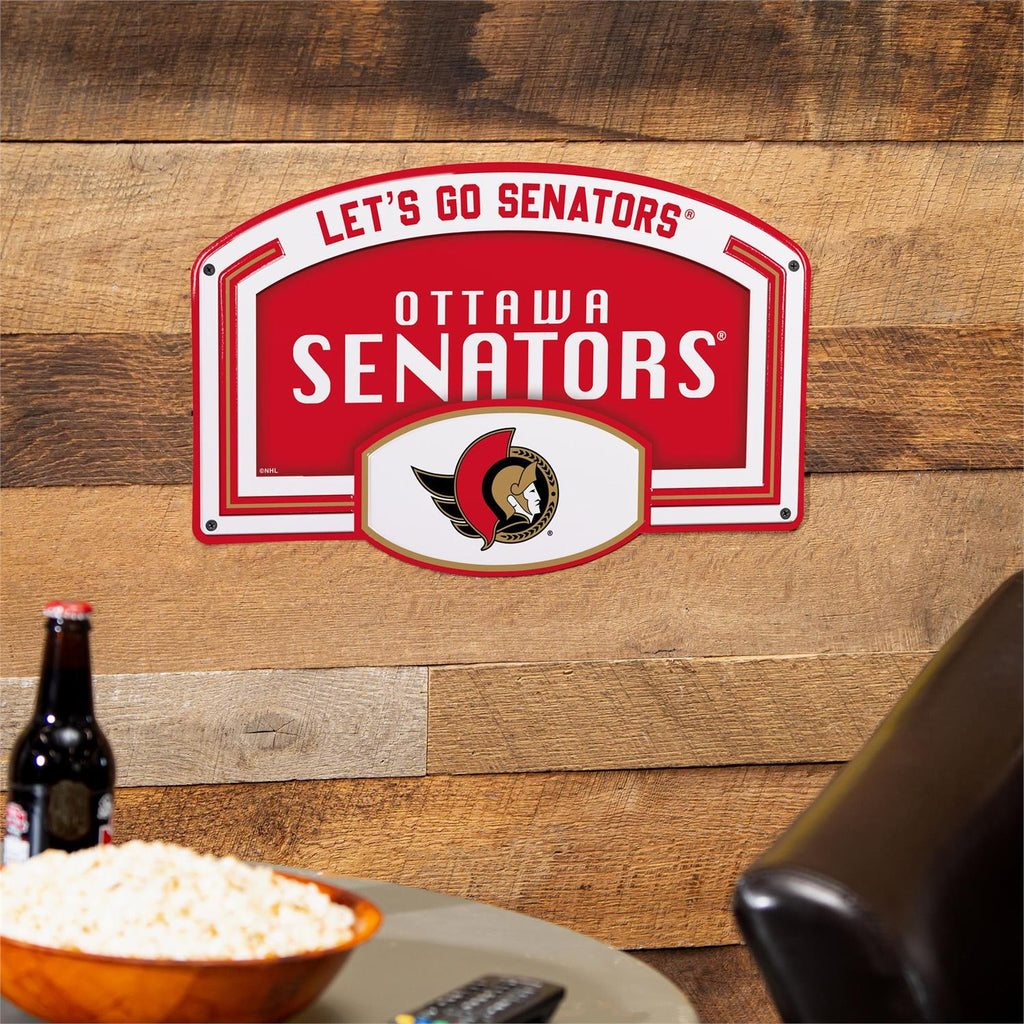 Show off your team spirit with the Ottawa Senators Embossed Steel Wall Sign. Perfect for any fan, this sign features a bold design with the team's logo and colors, making it an eye-catching addition to your home, office, or man cave. Crafted from durable steel, it measures 11.75 inches in length and 7.5 inches in width, ensuring it fits seamlessly into any space. Hang it up to celebrate game days or simply to express your loyalty to the Senators. This sign is a must-have for any hockey enthusiast.