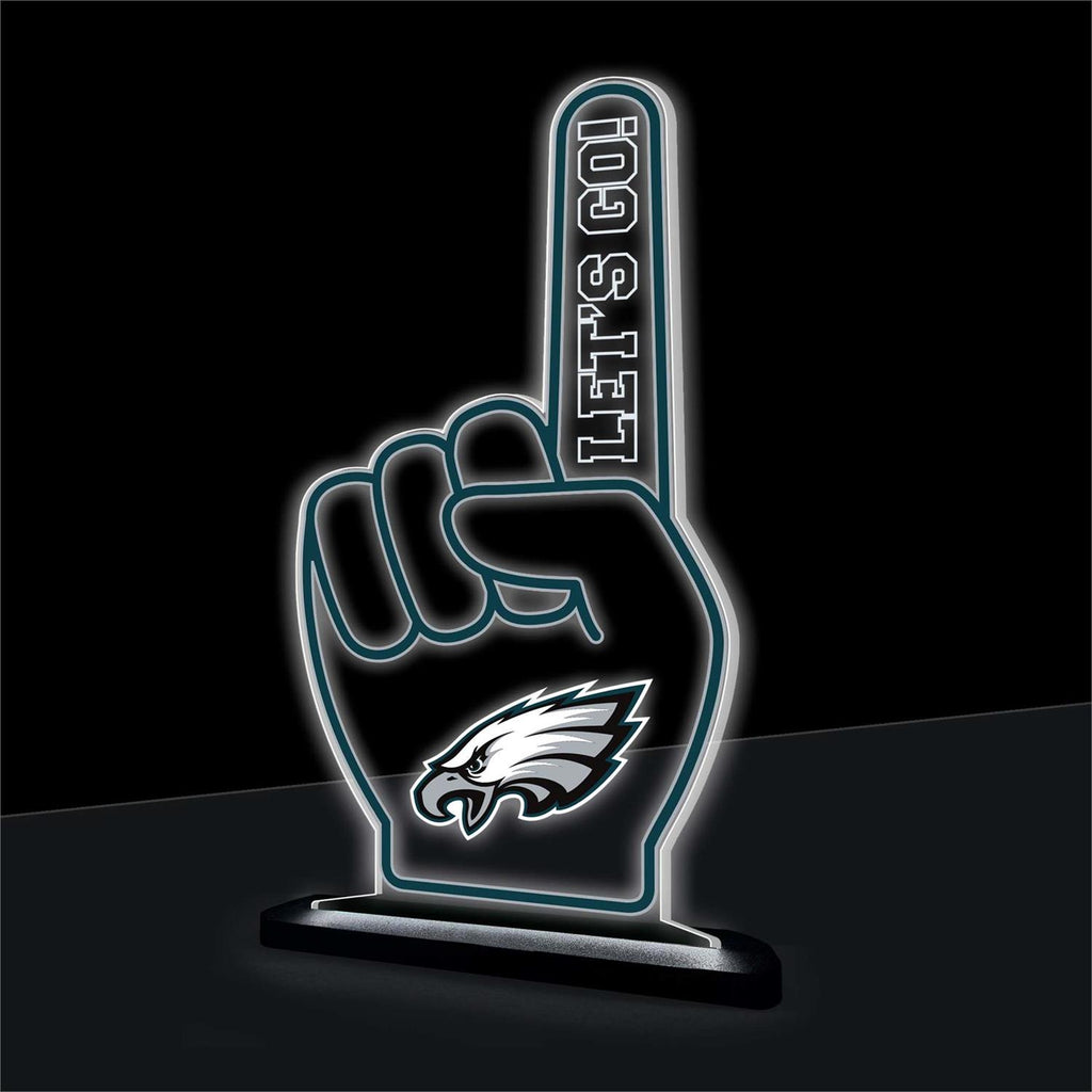 Illuminate your space with team pride using the Philadelphia Eagles NFL Football Foam Finger Desklite. This vibrant LED decor piece, shaped like the iconic foam finger, adds a spirited touch to any room. Measuring 10 inches in length, 7 inches in width, and 1.5 inches in height, it fits perfectly on desks, shelves, or any flat surface. The LED lighting enhances the design, making it a standout feature that showcases your love for the Eagles. Ideal for game days, offices, or as a unique gift for devoted fans.