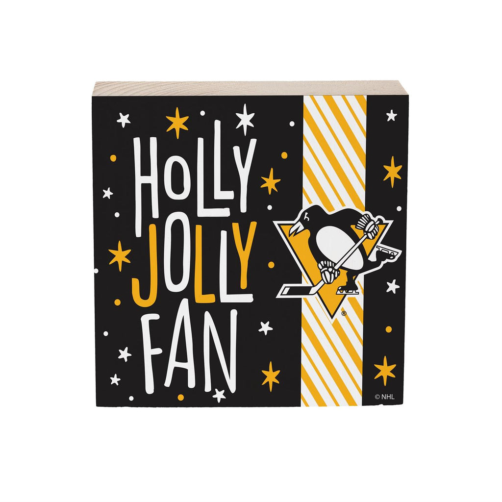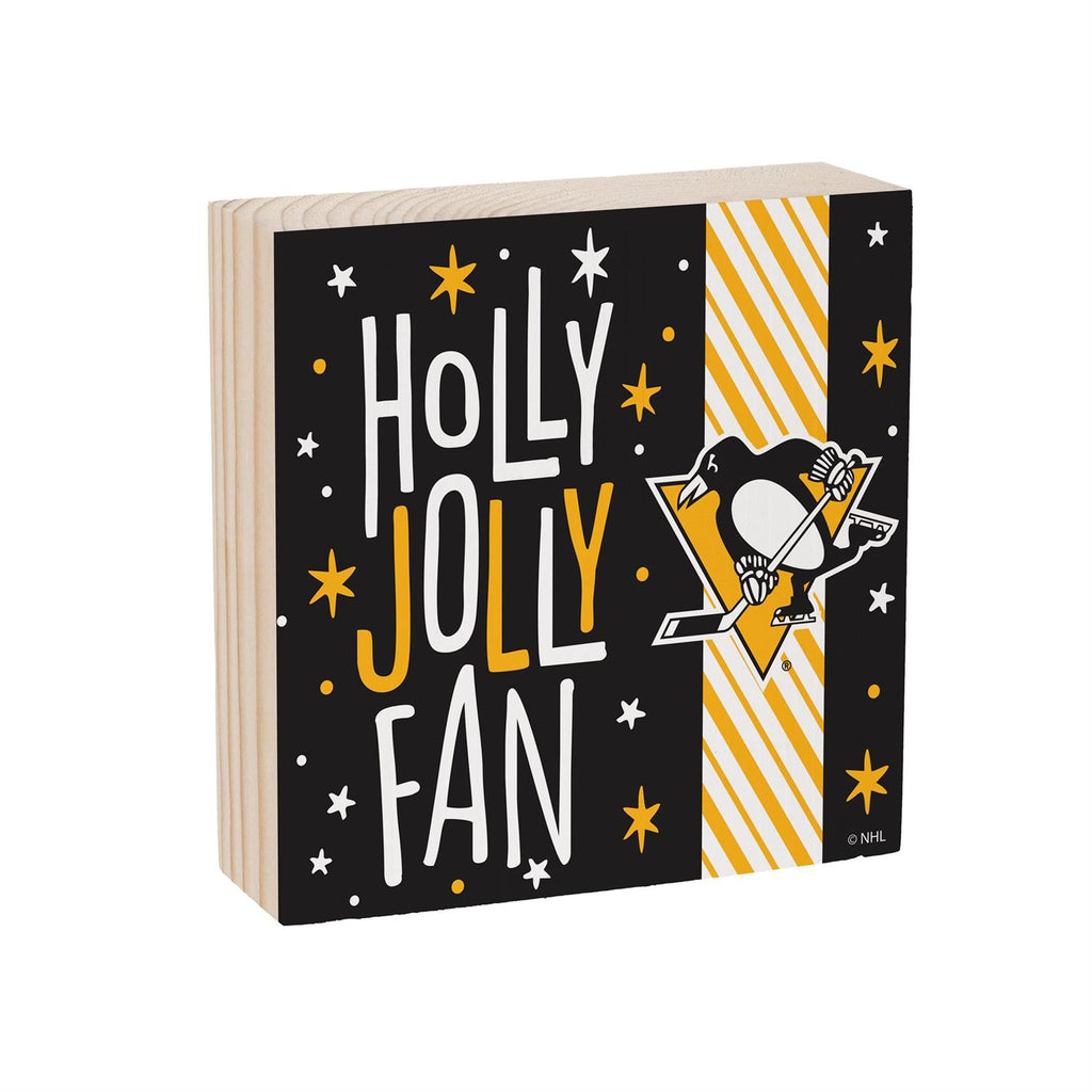 Celebrate your love for the Pittsburgh Penguins this holiday season with this charming 6x6 table décor plock. Featuring the iconic team logo and festive "Holly Jolly Fan" text, this compact piece is perfect for any fan's home or office. Its sturdy wooden construction and bold color scheme make it a standout addition to your holiday decorations. Ideal for tabletop display, this plock adds a spirited touch to your space, making it a delightful gift for any Penguins enthusiast.