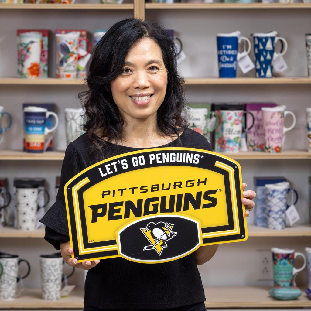 Show your team spirit with the Pittsburgh Penguins USA Embossed Steel Wall Sign. Crafted from durable steel, this 11" x 17" sign features vibrant yellow and black team colors that stand out in any room. Its embossed design adds texture and depth, making it a perfect statement piece for any fan's space. Whether you're decorating a game room, office, or man cave, this sign is a must-have for Penguins enthusiasts. Easy to hang and built to last, it’s an ideal gift for any occasion.