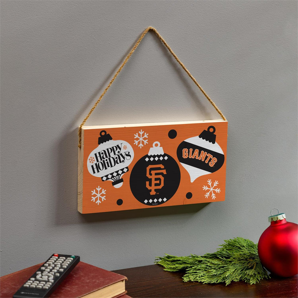 Celebrate the holiday season with this San Francisco Giants wood wall sign, perfect for any fan's home décor collection. Measuring 6x11 inches, this festive sign features vibrant team colors and holiday-themed designs, making it an ideal addition to your holiday decorations. Crafted from durable wood, it's designed to last through seasons of celebrations. The sign comes ready to hang with a rustic twine loop, adding a charming touch to any room or entryway. Show your team spirit and holiday cheer with this unique piece.