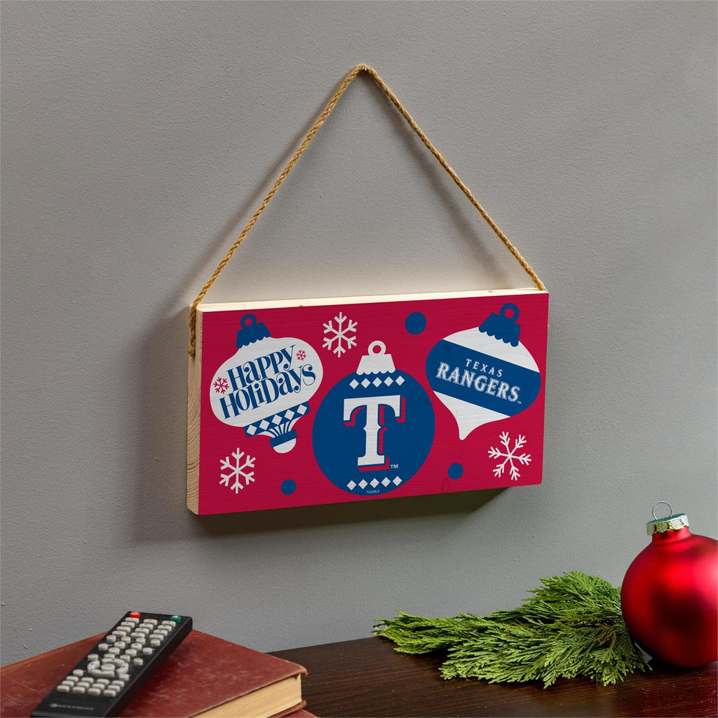 Celebrate the holiday season with a touch of team spirit using the Texas Rangers Holiday Wood Wall Sign. Measuring 6x11 inches, this vibrant sign is crafted from durable wood and features a festive design with the team logo and holiday ornaments. Its compact size makes it perfect for any wall or door, bringing a cheerful and sporty vibe to your home or office. The included rope allows for easy hanging, making it a convenient addition to your holiday décor. Show off your team pride while spreading holiday cheer with this stylish wall sign.