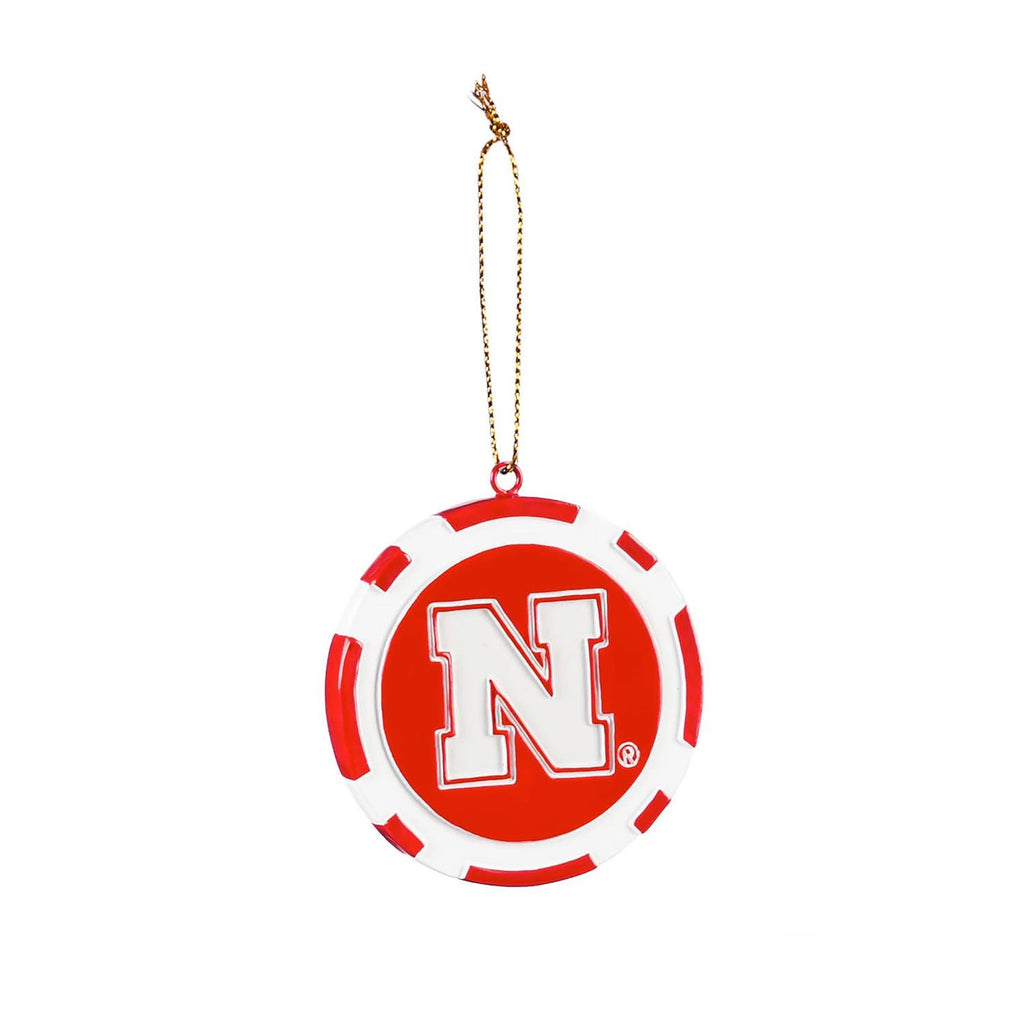 Celebrate your school spirit with this University of Nebraska Game Chip Ornament. Perfect for avid fans and alumni, this ornament is designed to resemble a poker chip with the iconic Nebraska logo, making it a unique addition to your holiday décor or any room throughout the year. Sized at 2.5 inches in diameter, it's crafted to hang easily on your tree or display stand. The vibrant red and white colors ensure it stands out, capturing the festive and spirited essence of Nebraska. Show your pride and add a touch of Husker spirit to your collection.