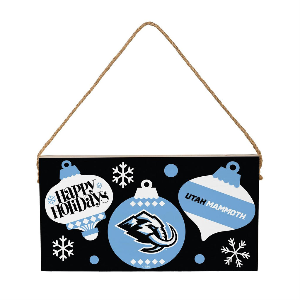 Celebrate the holiday season with the Utah Mammoth Holiday Wood Wall Sign. Perfect for fans and festive décor enthusiasts, this sign measures 6x11 inches, making it an ideal addition to any wall or entryway. Crafted from quality wood, it features a charming design with snowflake accents and team-inspired elements. The natural twine hanger adds a rustic touch, ensuring easy installation and a cozy, holiday feel. Whether you're showcasing team pride or simply adding a touch of seasonal cheer, this sign is a versatile and stylish choice.