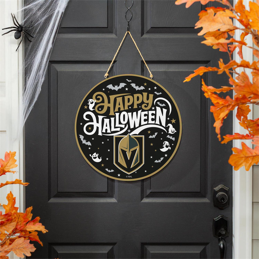 Celebrate Halloween with a dash of team spirit using this Vegas Golden Knights Halloween Round Door Décor. Featuring an eye-catching design with festive elements like bats and ghosts, this piece is perfect for fans looking to decorate their home in style. Measuring 18 inches in diameter, it’s crafted to fit perfectly on your door or wall. The sturdy hanging rope ensures easy and secure installation, while the durable construction promises long-lasting use. Ideal for indoor decoration, it adds a unique touch to any fan’s Halloween festivities.