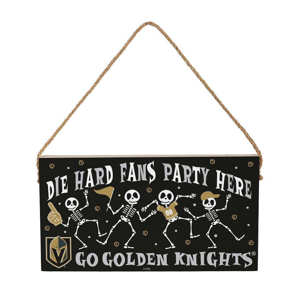 Celebrate your team spirit and the spooky season with the Vegas Golden Knights Halloween Wood Wall Sign. Measuring 6x11 inches, this eye-catching sign features playful skeletons and team-themed graphics, making it a perfect addition to your Halloween décor. The durable wood construction ensures it will last for many seasons, while the jute rope allows for easy hanging. Ideal for fans who love to combine their passion for hockey with festive holiday decorations, this sign is sure to be a conversation starter at any gathering.