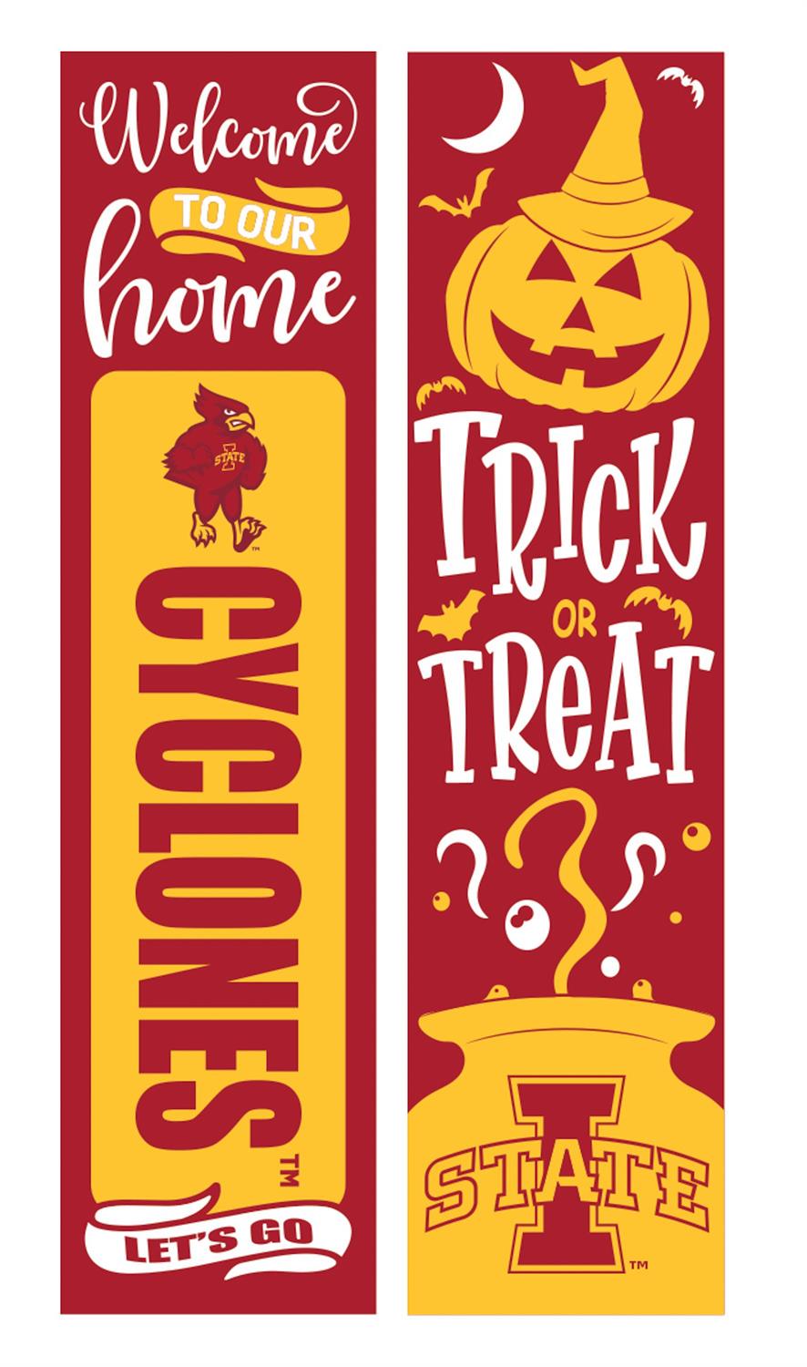 Embrace the spirit of Halloween with this double-sided porch leaner featuring Iowa State University themes. Perfect for adding a festive touch to your porch, this leaner combines school pride with seasonal charm. Measuring 46 inches, it fits perfectly against your doorway or porch wall, offering a vibrant display of Halloween and collegiate enthusiasm. Made from durable materials, this leaner is designed to withstand the elements, ensuring it remains a staple of your seasonal décor for years to come. The bold colors and playful design are sure to catch the eye of trick-or-treaters and guests alike.
