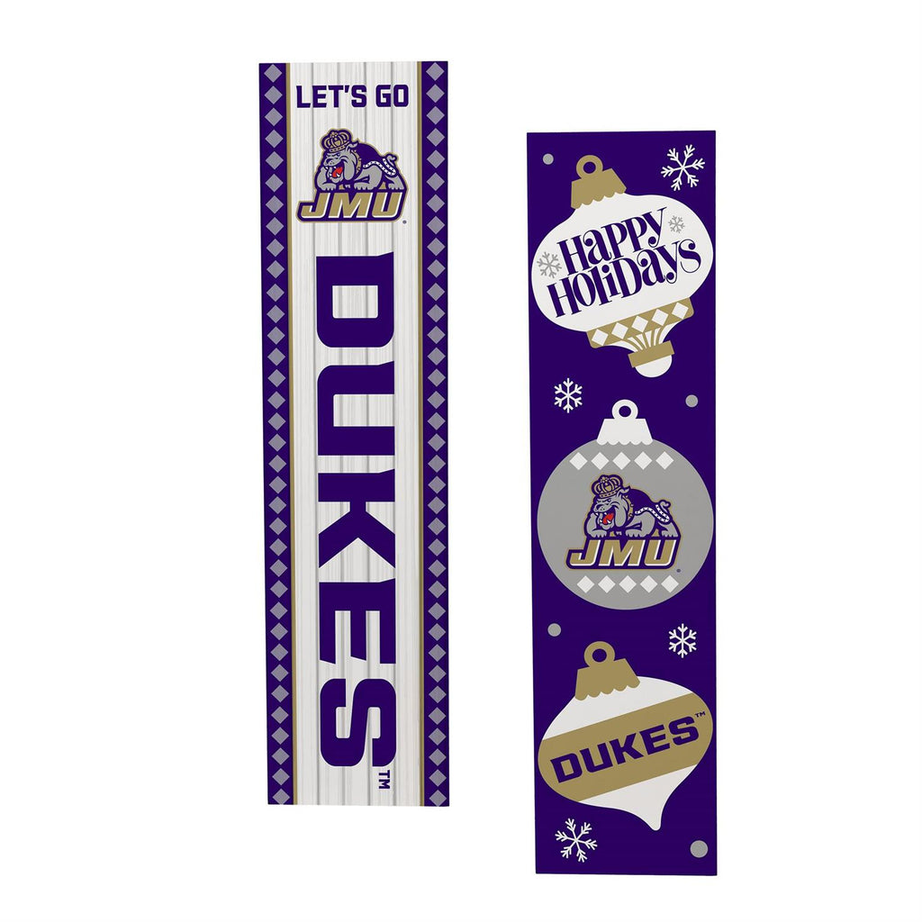 Celebrate the holiday season and show your school pride with this 46" Double Sided Leaner featuring James Madison University. Perfect for your porch or entryway, this leaner is designed to capture the spirit of Christmas while supporting the Dukes. Made with durable materials, it withstands outdoor elements and adds a festive touch to any space. Its double-sided design allows for versatile display options, ensuring you can showcase your enthusiasm from any angle.