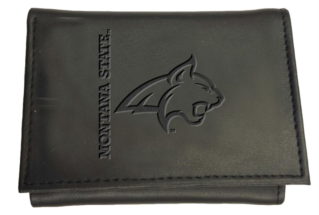 Show off your school spirit with this Montana State University tri-fold wallet. Crafted from durable black leather, it features a sleek embossed logo that represents your pride for the Bobcats. Its compact design makes it easy to slip into your pocket while providing ample space for your essentials. With a length of 4.25 inches, a width of 3.38 inches, and a height of 0.75 inches, this wallet is perfect for everyday use or as a gift for alumni and fans alike.