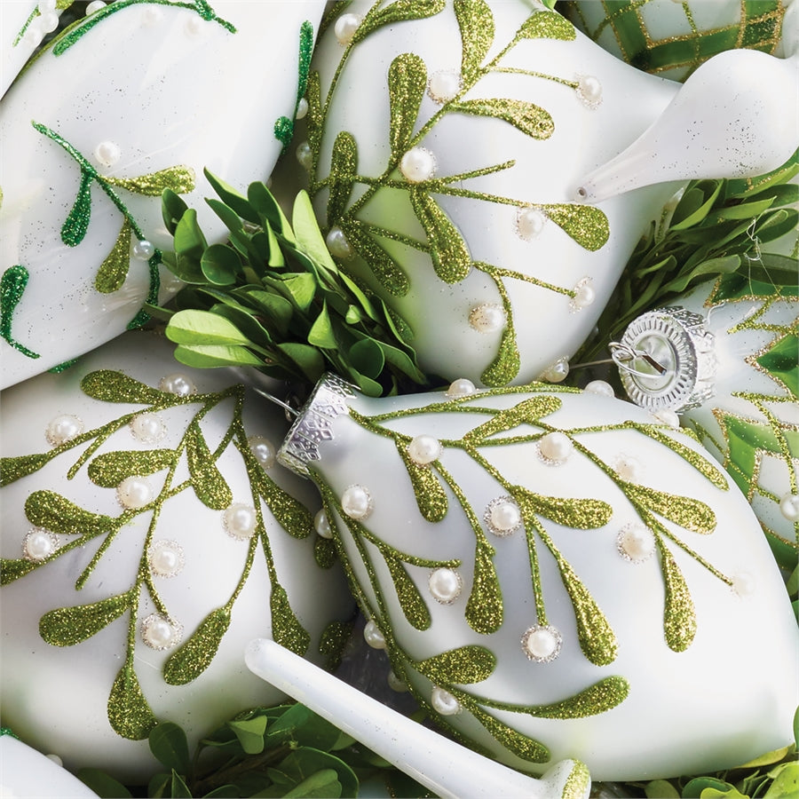 Napa Home Garden, MISTLETOE GLASS ORNS ,SET OF 3 PEARL/GRN,z5088pgr