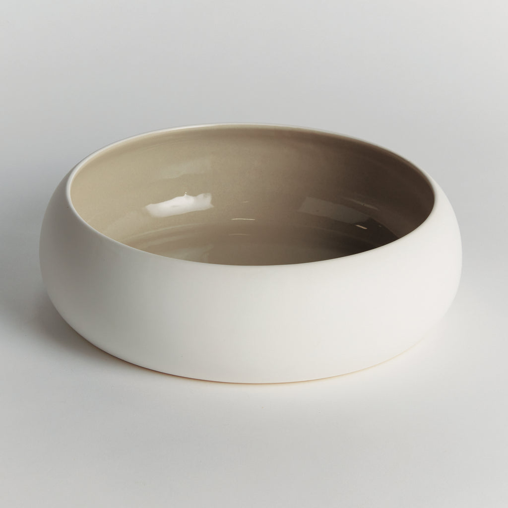 With a simple silhouette and smooth finish, the Sandbar Decorative Low Bowl by Barclay Butera is modern & sophisticated. Made of a high-fired durable stoneware, and finished with a contrasting matte and high gloss glaze, it is as resilient as it is beautiful. Fill it with some natural orbs, or luscious fruit or display just as is for a polished, designer-inspired look.