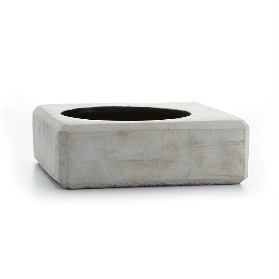 In a cool gray concrete with beveled angles and off-center design, Mason is all mod. Tailor-made for the industrial or contemporary space.Has drain holes.Drop-in sizes: E
