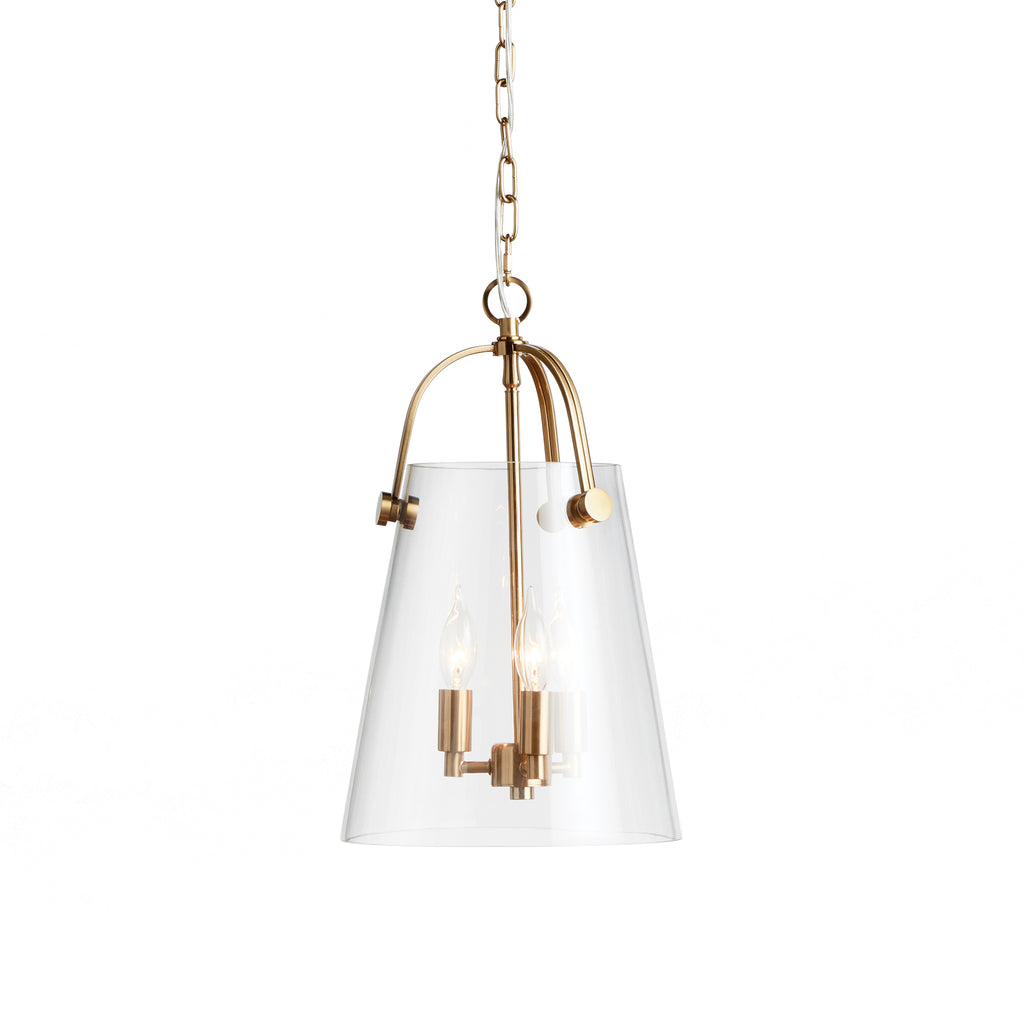 Made of a custom glass mold, this pendant is well proportioned. In a clever design decision, the top gold metal detail goes through the glass, creating a unique look.