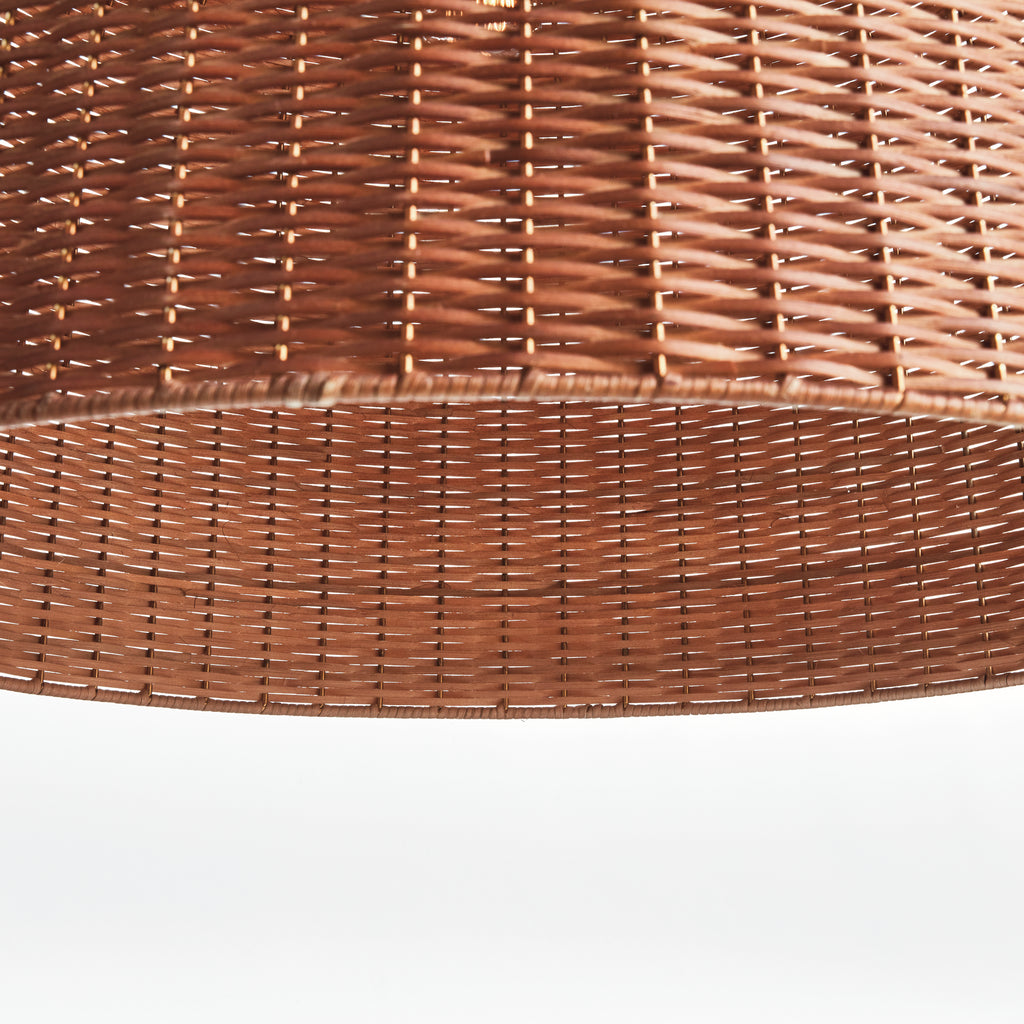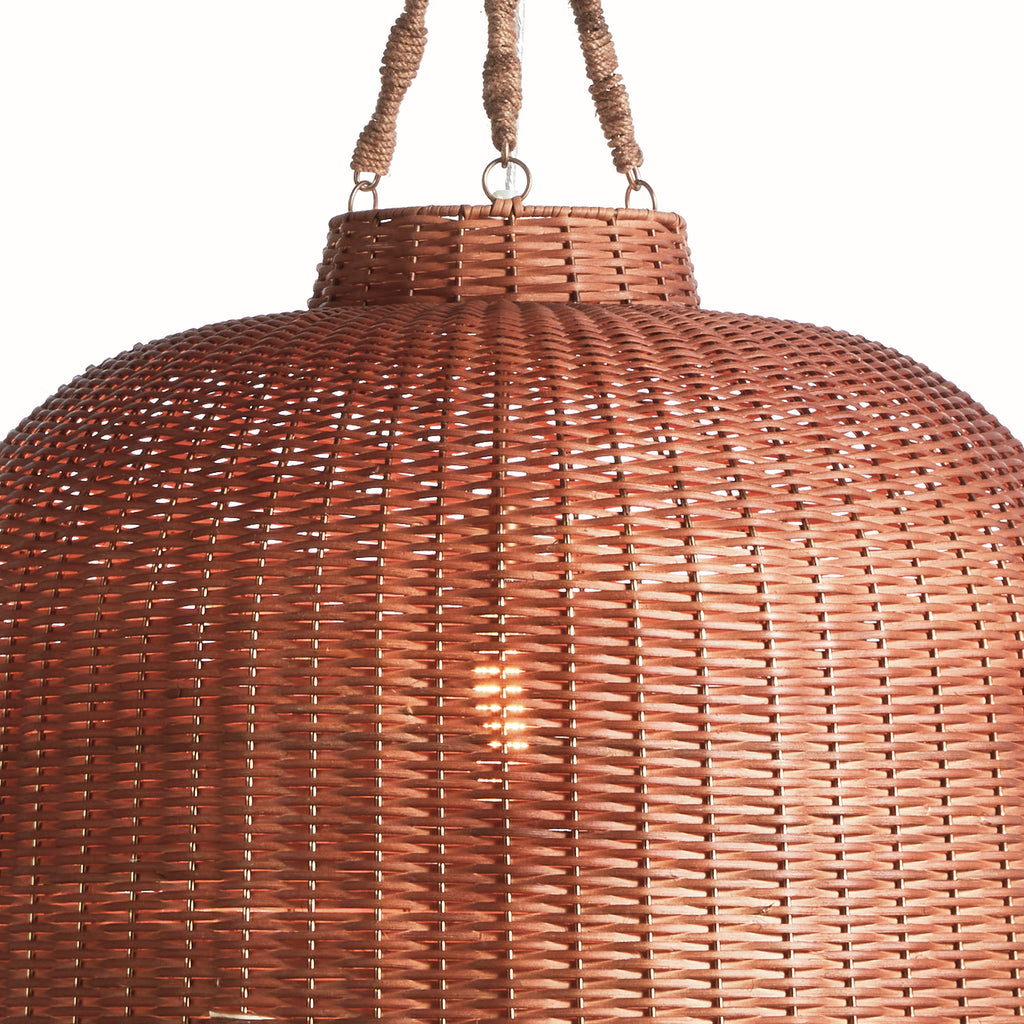 Hand-woven of natural rattan and designed in a bell-shaped silhouette, this casual, yet refined pendant is scaled for the wide open space. The honey brown finish is right on time for the warming trend interior designers are looking for. A unique fixture above kitchen island or dining table adding texture and warm filtered light to any space.