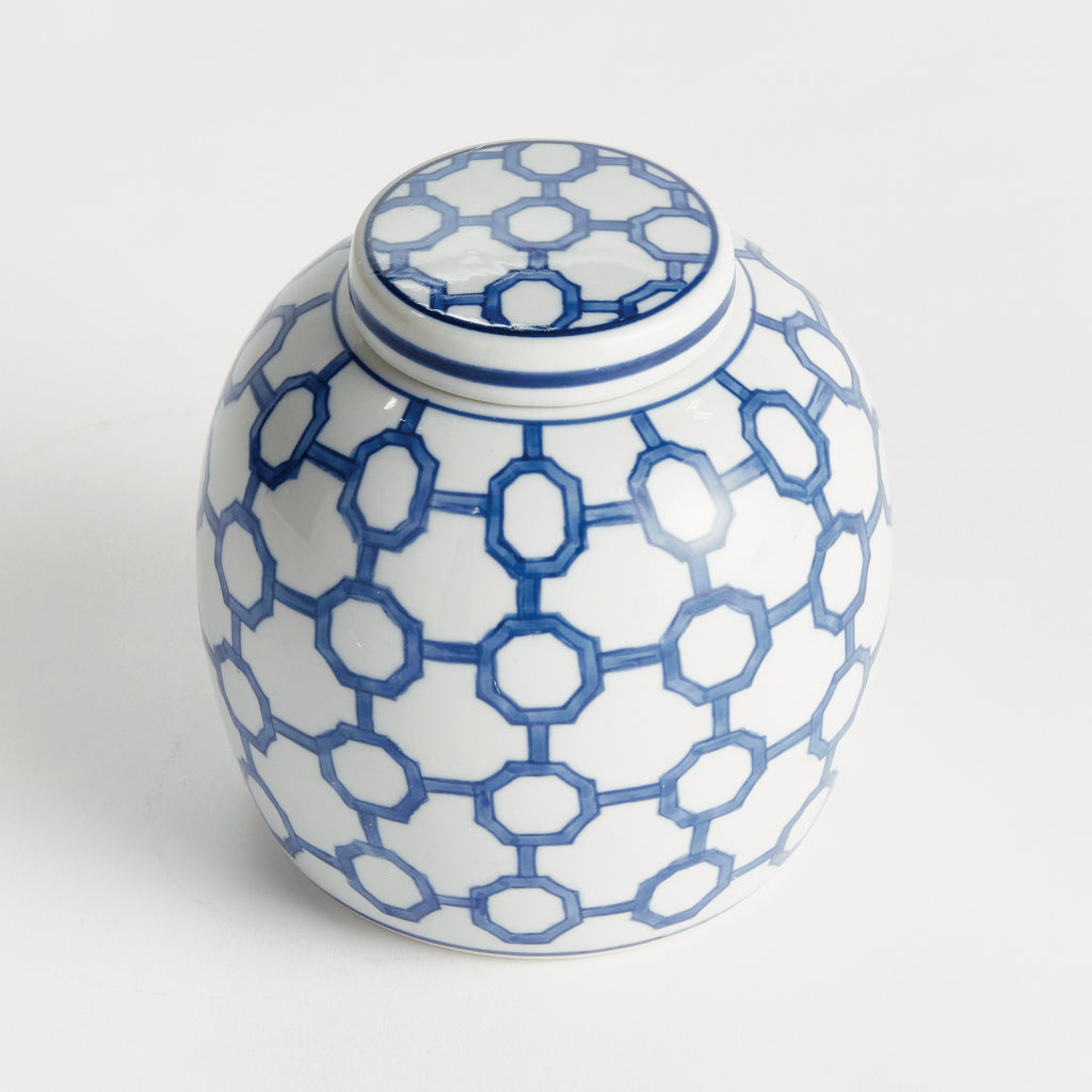 Barclay Butera has redefined 'classic' with his latest collection of Chinese porcelain. This link lidded jar is no exception. A beautiful addition to bookshelf, coffee table or mantel. With time-honored patterns and elegant forms, this gorgeous look will continue to thrive.
