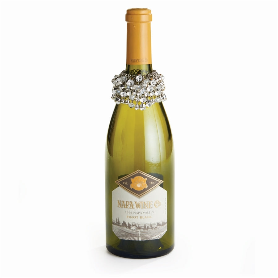 All dressed up and off to the party. This Jewel Wine Bottle Sash is a dashing accessory. Along with your favorite vino, makes a great hostess gift.Interior use.