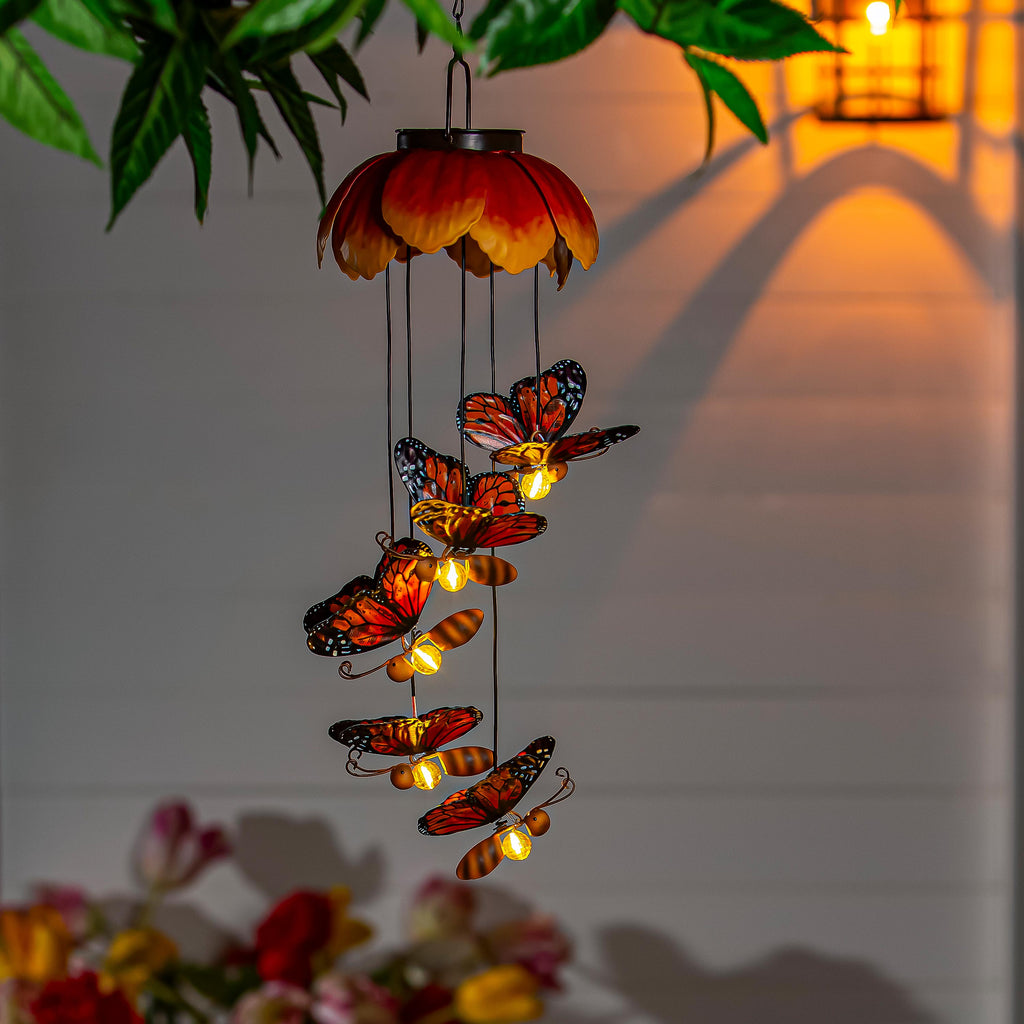 Enhance your outdoor space with this exquisite Pollinator Garden Mobile featuring vibrant metal monarch butterflies. Powered by solar energy, this charming mobile adds a touch of whimsy to your garden decor.