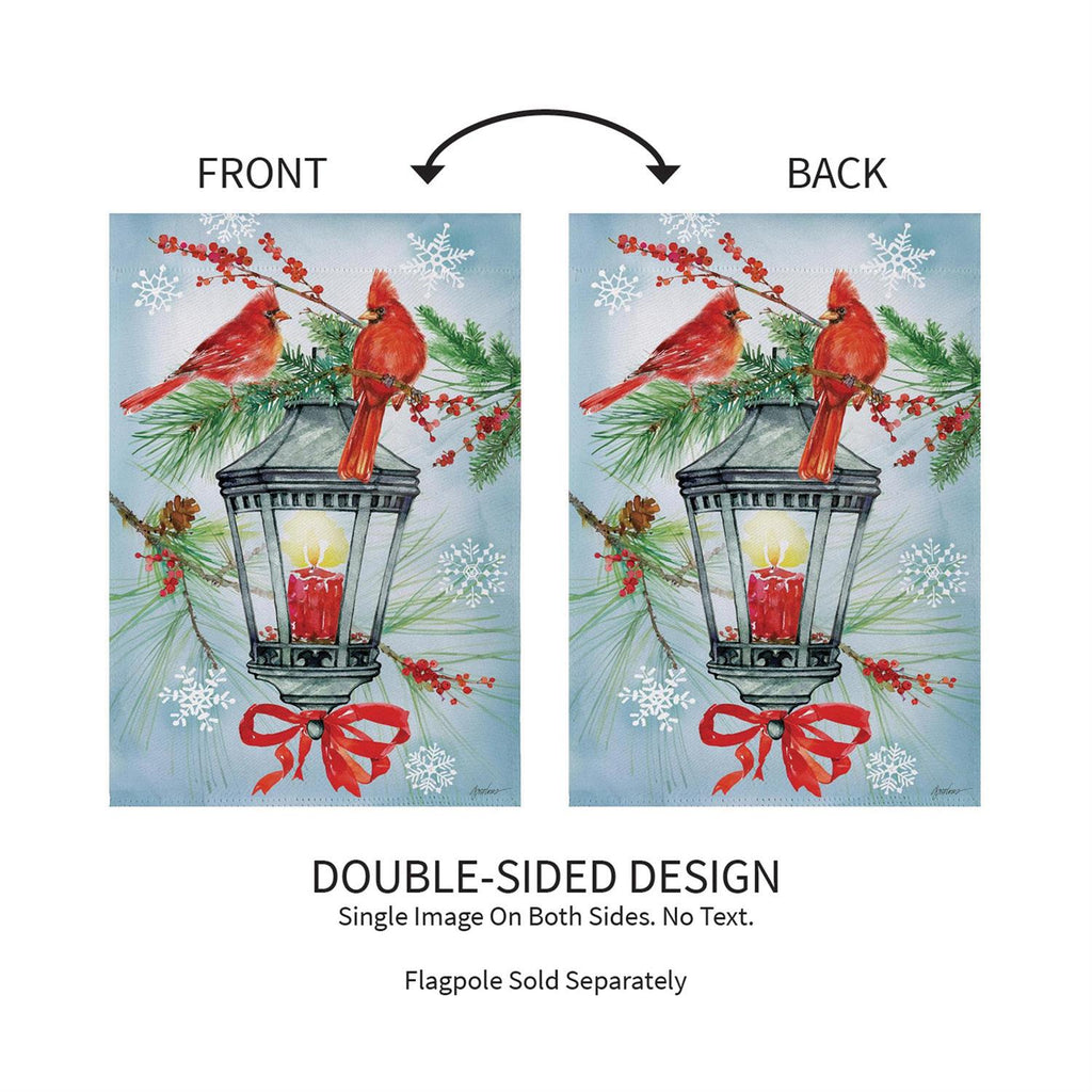 Enhance your garden with the Cardinal Lantern Suede Garden Flag, a perfect seasonal accent to celebrate the winter months. Featuring vibrant red cardinals perched on a pine branch adorned with berries and snowflakes, this flag captures the serene beauty of winter. Crafted from high-quality suede, it offers durability and a soft texture that beautifully displays the intricate artwork. Its standard size makes it an ideal fit for most garden flag stands, allowing you to effortlessly welcome guests to your home with a touch of festive charm.
