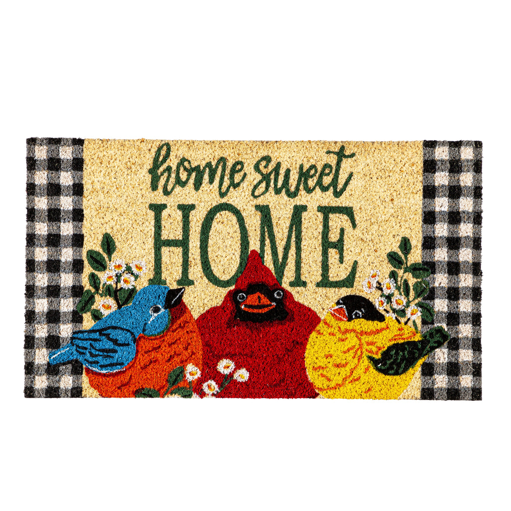 Welcome guests with a touch of whimsy using the Portly Birds Greetings Coir Mat. Crafted from durable coir, this mat features an endearing design of vibrant birds accompanied by the phrase 'Home Sweet Home.' Perfect for adding charm to your doorstep, the mat's natural fibers effectively trap dirt and moisture, keeping your home clean. The playful checkered border adds a cozy, rustic appeal, making it ideal for any season.