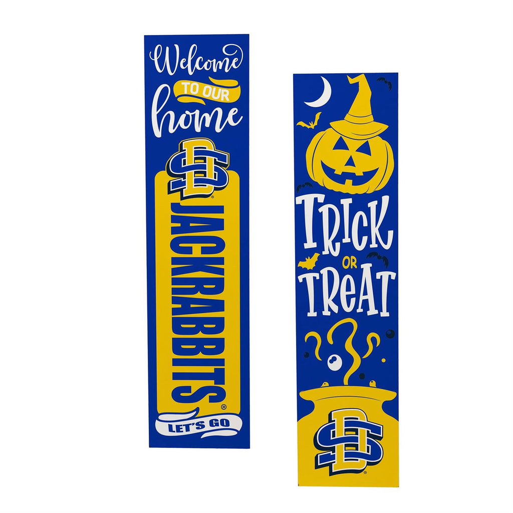 Celebrate your school spirit and the spooky season with this versatile 46" double-sided porch leaner. Perfect for South Dakota State University fans, this leaner features vibrant designs on each side, including a welcome message and a festive Halloween theme. Made from durable materials, it's designed to withstand outdoor conditions while adding a touch of personality to your home entrance. With its slim dimensions, it fits easily into any porch setting, making it a fantastic addition for both everyday and seasonal décor.