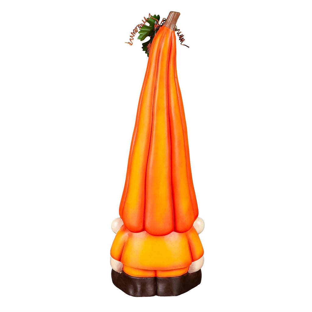 Add a touch of whimsy to your garden with this 24-inch Pumpkin Gnome Garden Statuary. Perfect for fall, this charming gnome features a long, pointed hat designed to resemble a pumpkin, complete with a vine and leaf detail. Crafted with durable materials, it's built to withstand outdoor elements while maintaining its vibrant colors. Standing over two feet tall, this delightful statue makes a playful statement in your garden, on your porch, or along a pathway. Welcome guests with a festive spirit and a hint of magic this autumn season.