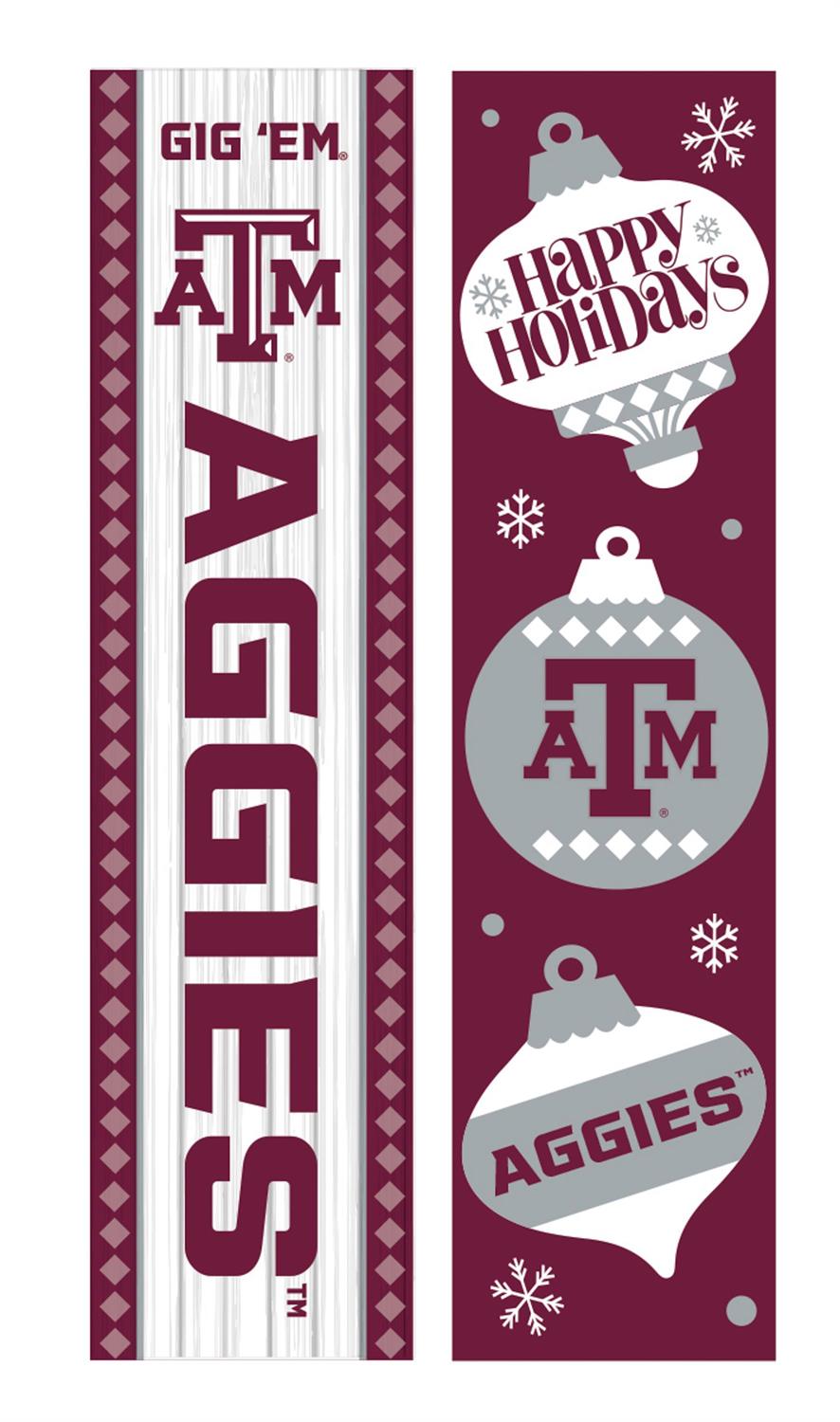 Celebrate the holiday season and showcase your Texas A&M pride with this versatile 46" Double Sided Leaner. Perfect for your porch or entryway, this leaner features festive designs that highlight your enthusiasm for the Aggies. Made with durable materials and measuring 47 x 11.25 inches, it offers a striking presence without overwhelming your space. The reversible design allows you to easily switch between displaying your team spirit and adding a touch of Christmas cheer, making it an ideal decoration all season long.