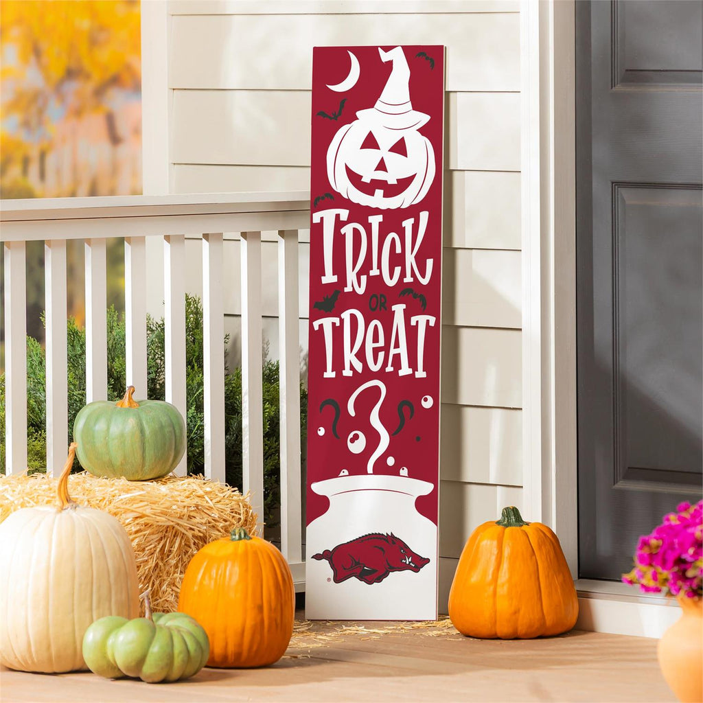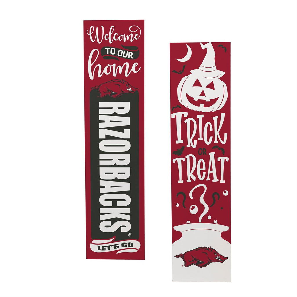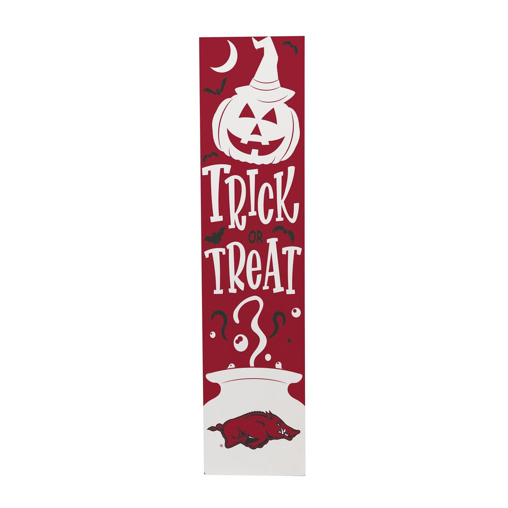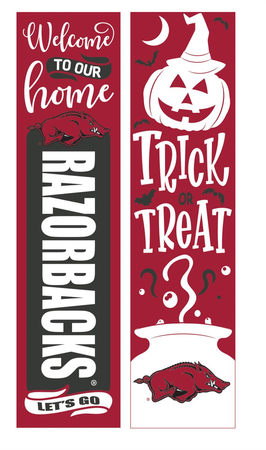Celebrate Halloween and show off your school spirit with this 46" Double Sided Leaner featuring the University of Arkansas theme. Perfect for your porch, this leaner is crafted to enhance your seasonal decor. One side showcases a festive Halloween design, while the other proudly displays your team pride. Made to withstand outdoor conditions, it’s an ideal addition to your autumn decorations. Easy to set up and versatile, this leaner brings a touch of charm and personality to any entryway.