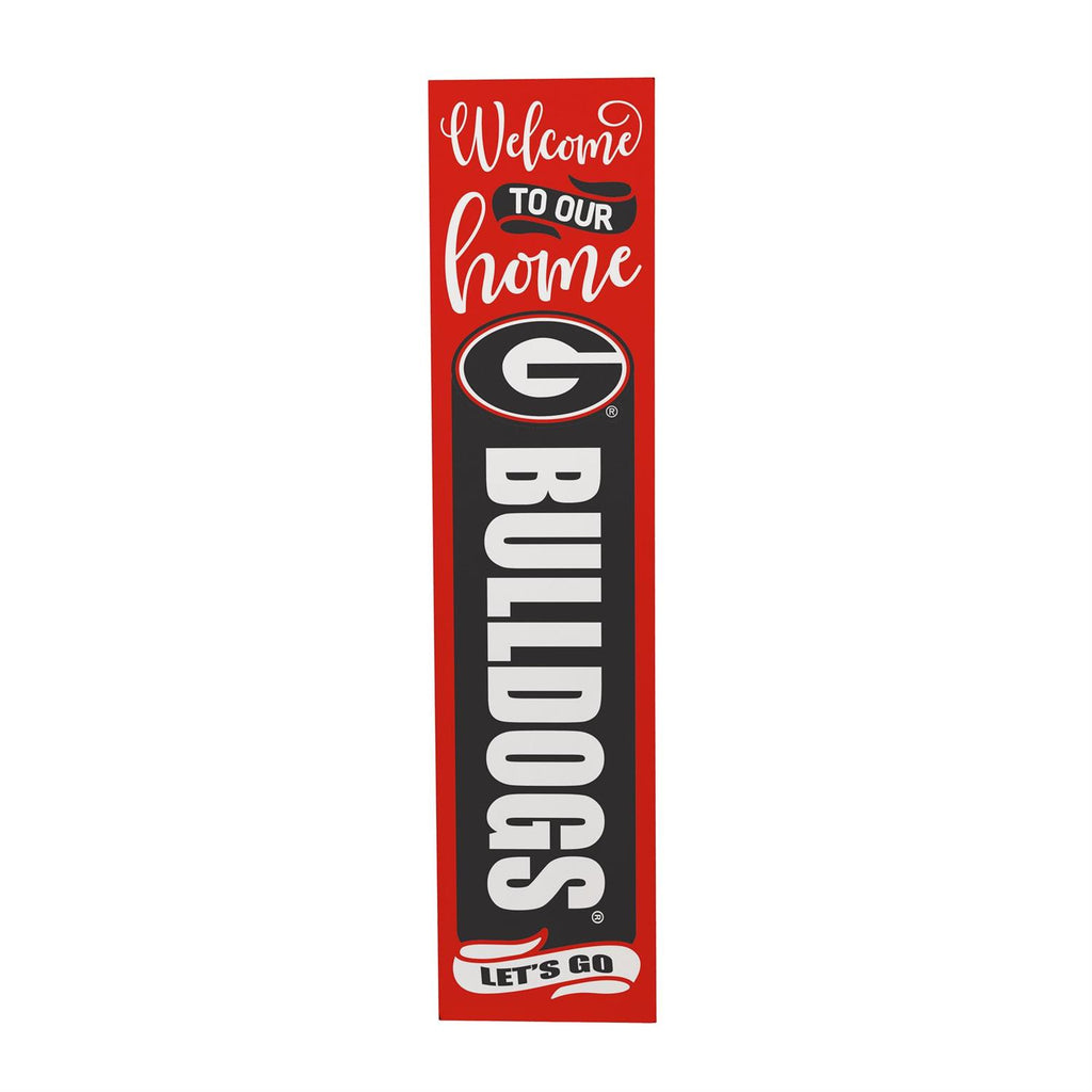 Celebrate your team spirit with this 46" Double Sided Leaner featuring the University of Georgia. Perfect for Halloween and beyond, this porch leaner showcases vibrant graphics and a spirited design that welcomes guests while showing off your Bulldogs pride. Made for durability, it is suited for both indoor and outdoor use, adding a festive touch to any porch or entryway. The double-sided feature offers versatile display options, making it a practical addition to your home décor. With its bold colors and collegiate theme, this leaner stands as a proud statement piece for fans.
