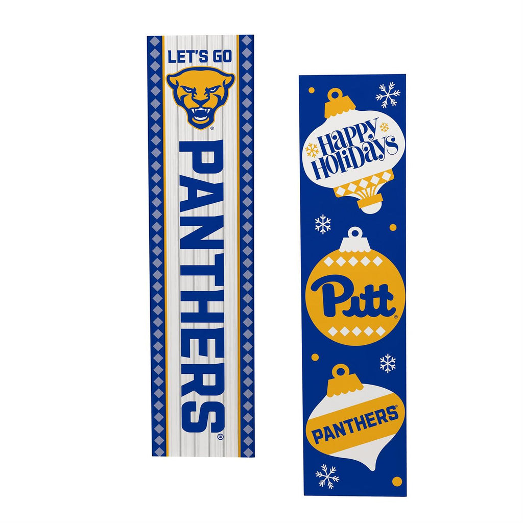 Celebrate your love for the University of Pittsburgh with this festive 46" double-sided porch leaner. Perfect for the holiday season, this sign features vibrant team colors and spirited designs to showcase your school pride. Made to withstand outdoor conditions, it's ideal for welcoming guests with a touch of Panther spirit. Place it on your porch or entryway to add a cheerful and collegiate touch to your home décor. Sturdy and stylish, this leaner is a must-have for any dedicated fan.