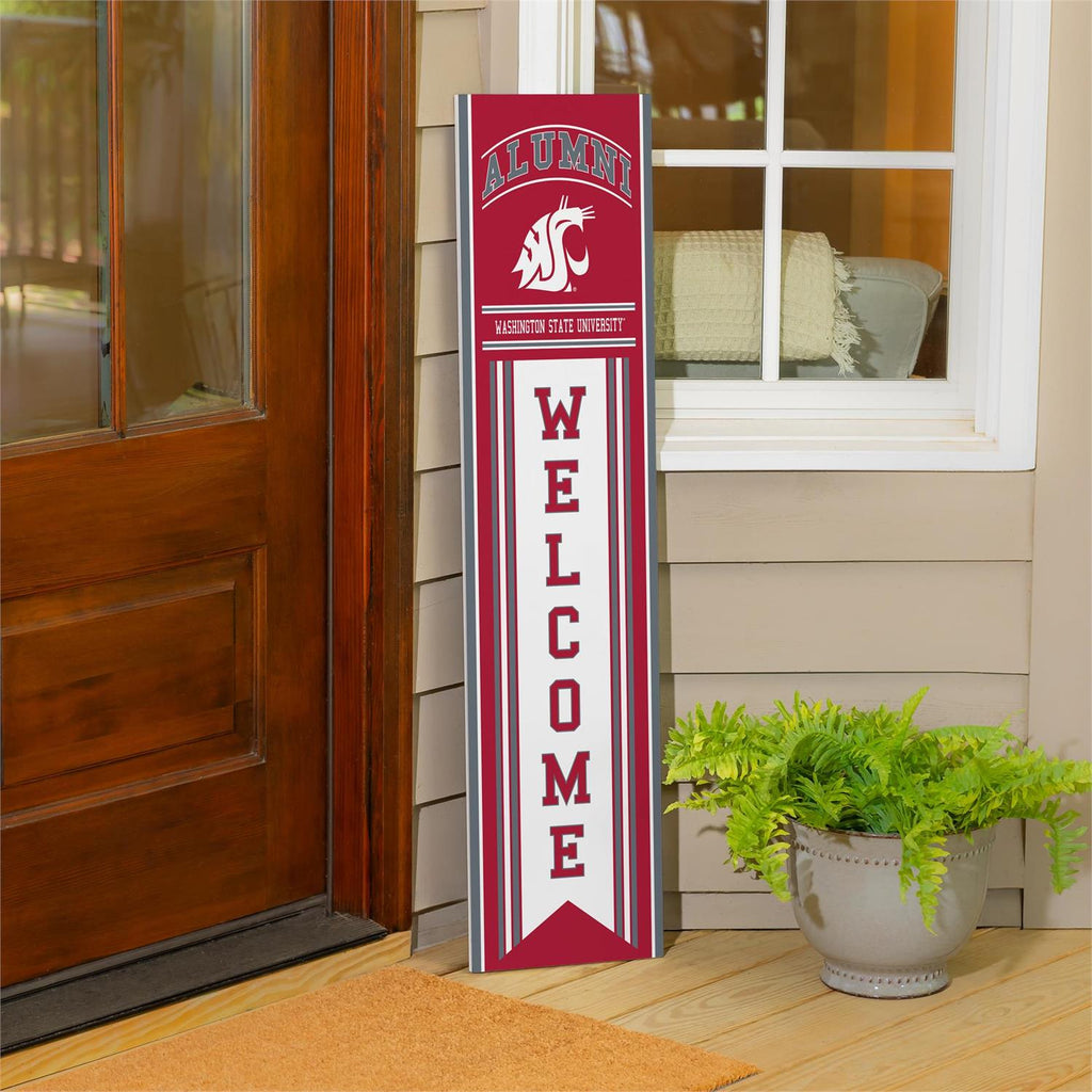 Showcase your Washington State University pride with this large alumni porch leaner. Perfect for welcoming guests, this single-sided sign measures 47 inches in length and 11.25 inches in width, making it an eye-catching addition to any porch or entryway. Crafted for durability and designed with the university's colors and logo, it offers a bold statement of school spirit. Whether for game days or everyday display, this leaner is a must-have for WSU alumni.
