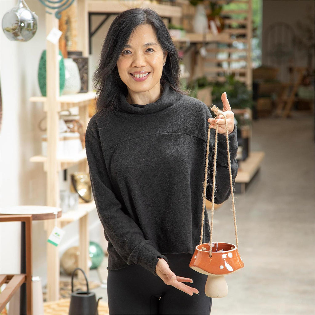 Hang this Orange Mushroom Ceramic Hanging Planter in any space that needs an extra dose of whimsy. Crafted of durable ceramic, the woodland-inspired toadstool design is perfect for displaying plants and flowers in any indoor or outdoor space.