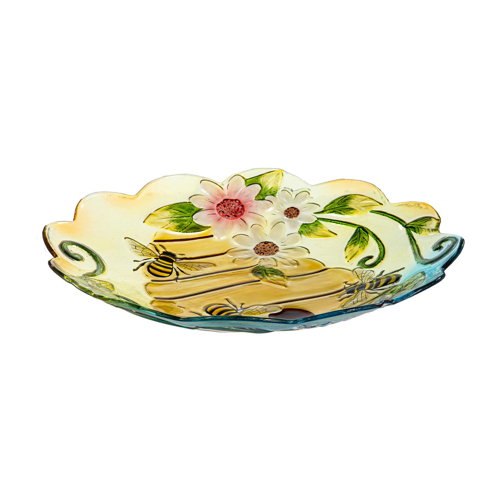 Enhance your outdoor space with this Pollinator Garden Birdbath, featuring a vibrant floral and beehive design. Perfect for attracting pollinators while adding a decorative touch to your garden.