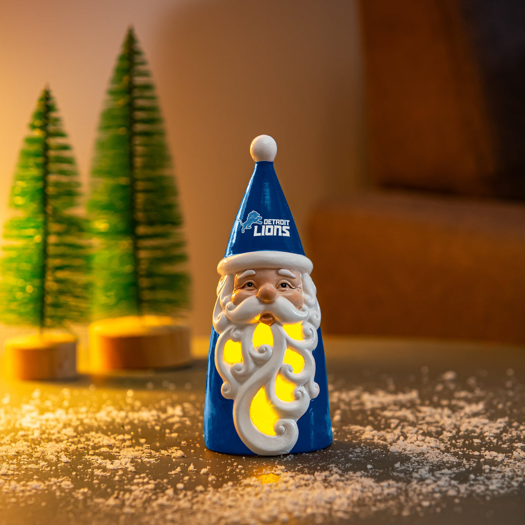 Celebrate the holiday season with the Detroit Lions Santa LED Statuary. This charming 8-inch decoration brings team spirit and festive cheer to your home.