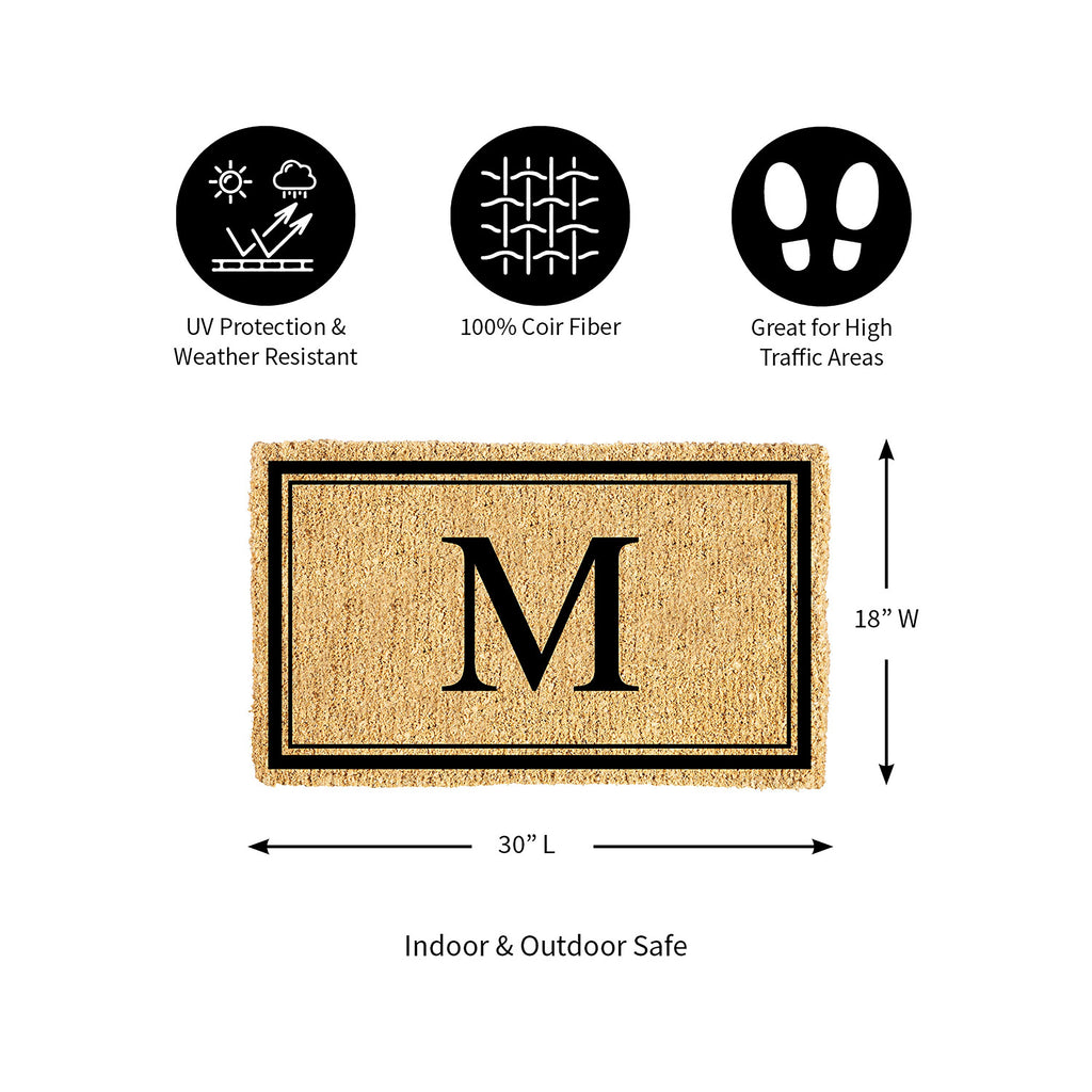 Enhance your entryway with this elegant Monogram Coir Mat featuring the letter 'M'. Its durable coir construction ensures effective dirt trapping, making it perfect for everyday use.