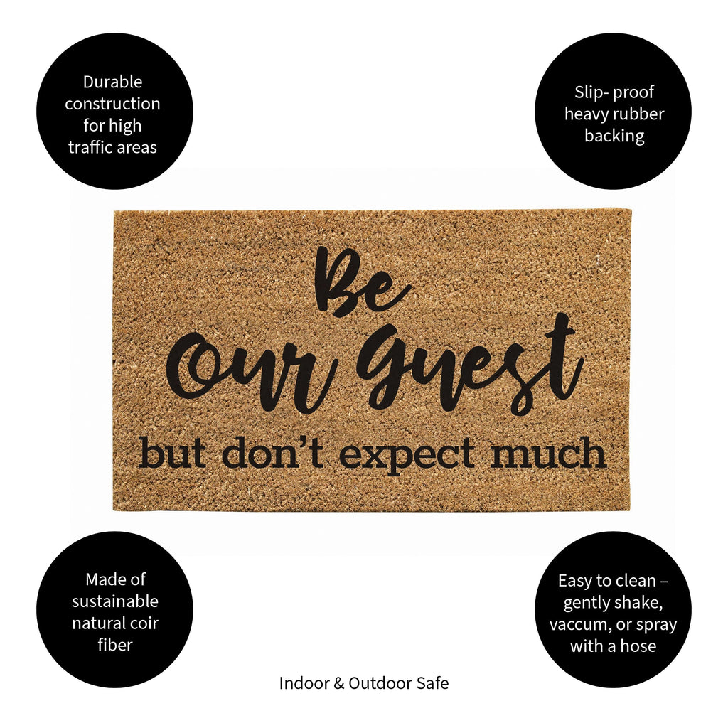 Welcome visitors with a touch of humor using this 'Be Our Guest' coir mat, designed to add charm to your doorstep. The durable coir material ensures it stands up to everyday use.