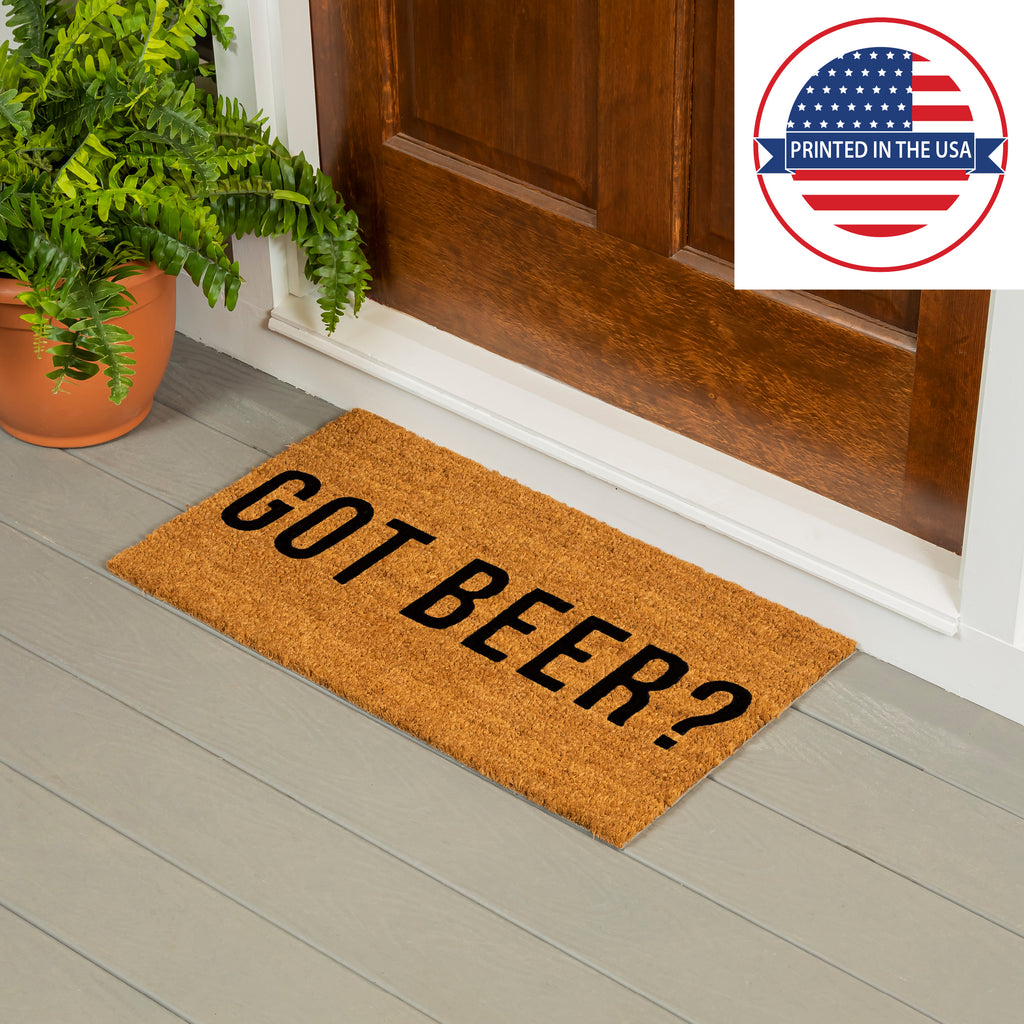 - Features a bold 'Got Beer?' design to add personality to your entryway.
